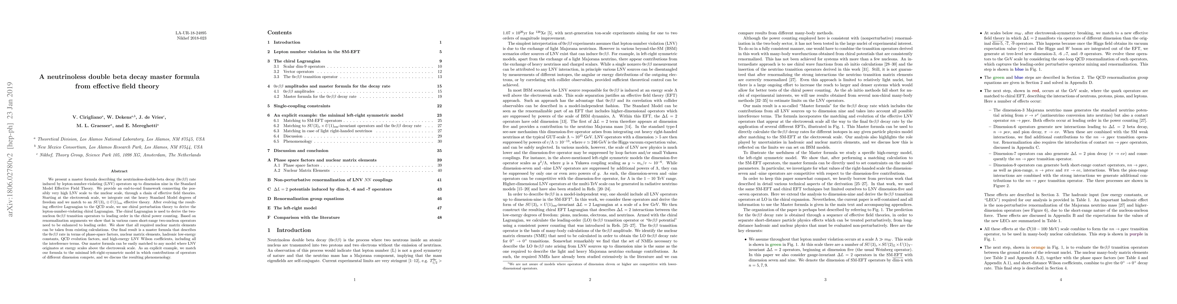 This paper presents a comprehensive master formula for the neutrinoless double beta decay rate, derived from effective field theory. It connects high-energy lepton-number-violating scales to nuclear scales through a series of effective field theories, ultimately providing a framework to compute the decay rate in terms of various physical constants and coefficients.