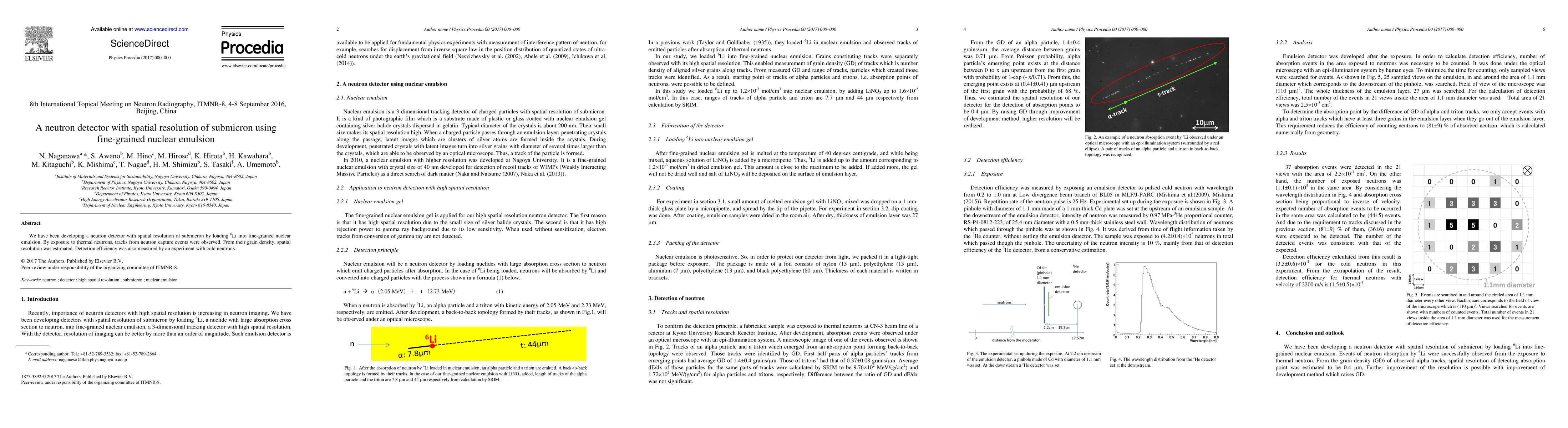 We have been developing a neutron detector with spatial resolution of submicron by loading 6Li into fine-grained nuclear emulsion. By exposure to thermal neutrons, tracks from neutron capture events were observed. From their grain density, spatial resolution was estimated. Detection efficiency was also measured by an experiment with cold neutrons.