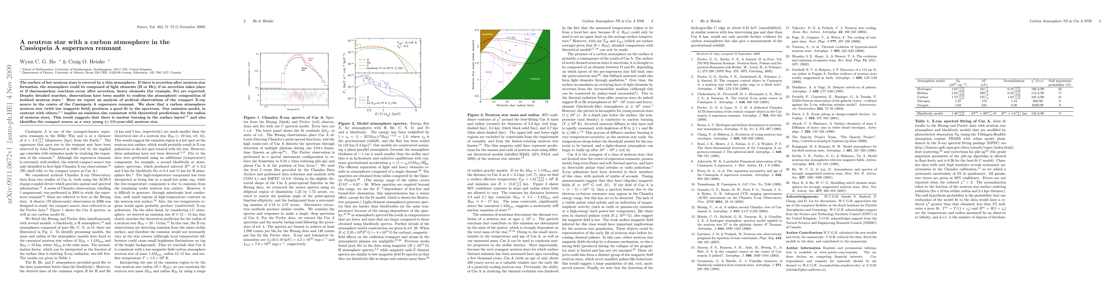 This paper reports the discovery of a neutron star in the Cassiopeia A supernova remnant with a carbon atmosphere, identified through archival X-ray observations. The carbon atmosphere suggests nuclear burning in the surface layers, indicating the neutron star is very young, approximately 330 years old.