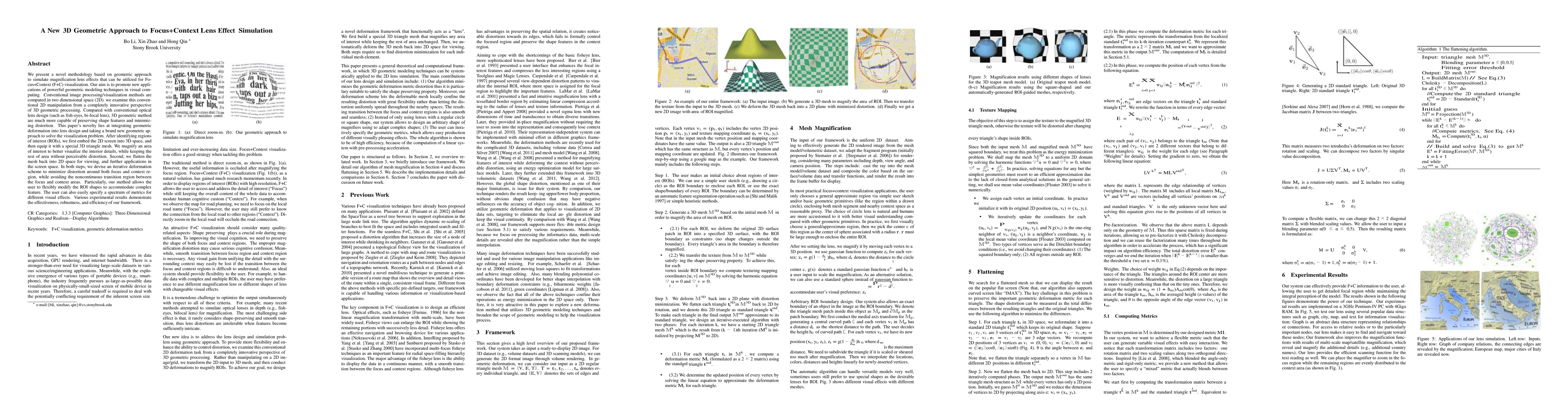 Researchers developed a 3D geometric approach to simulate magnification lens effects, allowing for better preservation of shape features and minimal distortion. The method enables flexible modification of region-of-interest shapes and specification of visual effects metrics.
