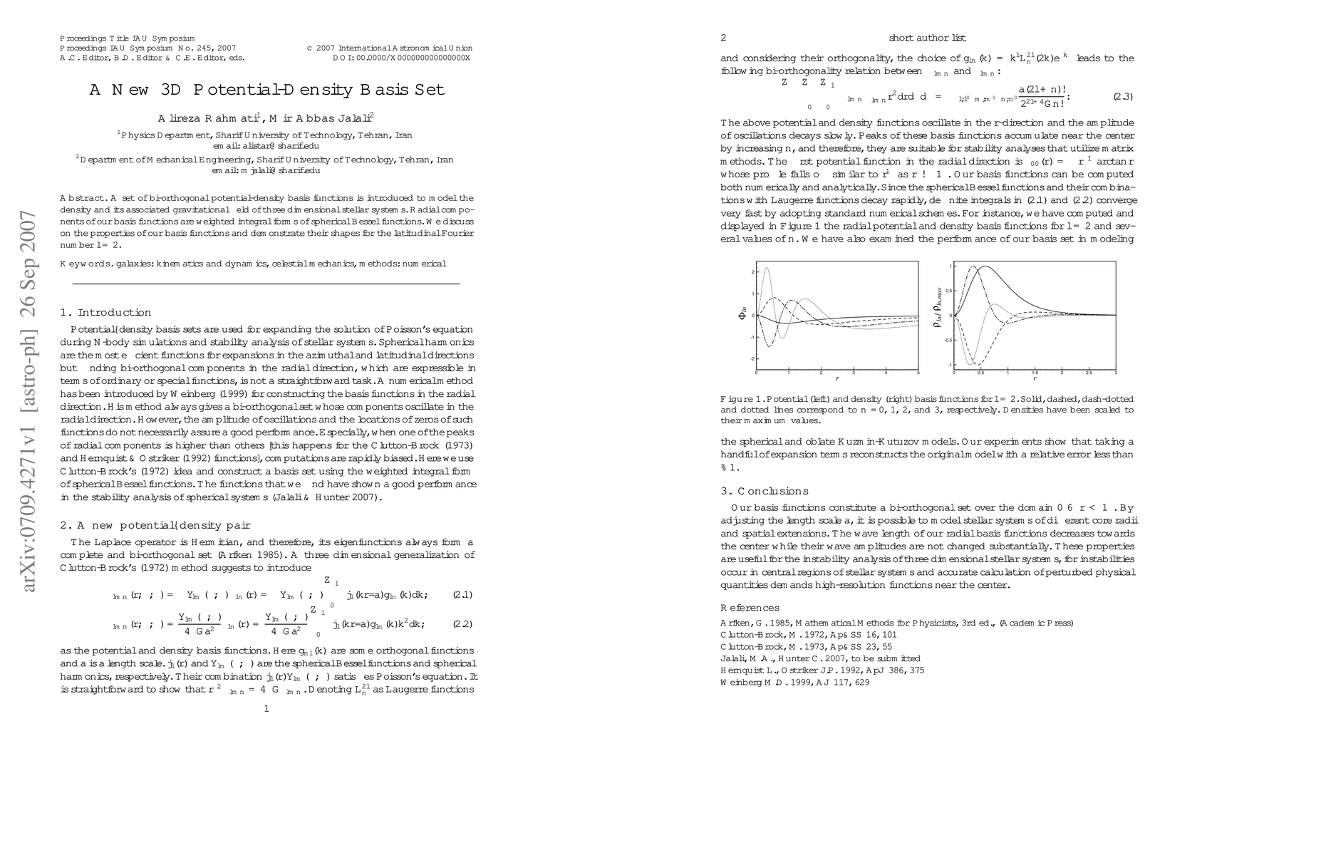 A new 3D basis set is introduced to model stellar systems' density and gravitational field using bi-orthogonal potential-density functions with weighted integral forms of spherical Bessel functions.