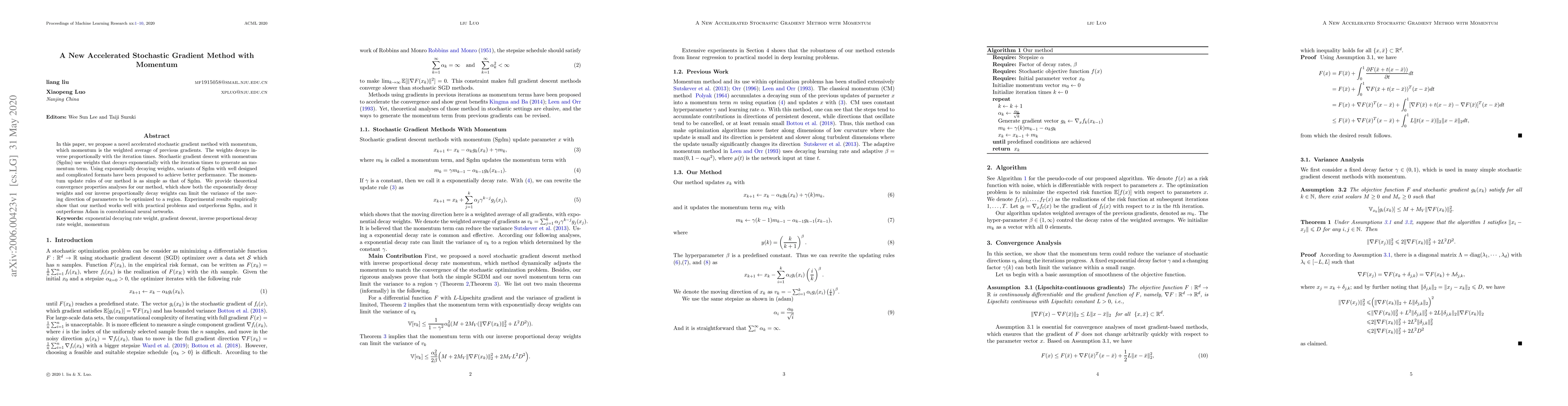 A new stochastic gradient method with momentum is proposed, outperforming existing methods like Sgdm and Adam in practical problems, especially in convolutional neural networks.