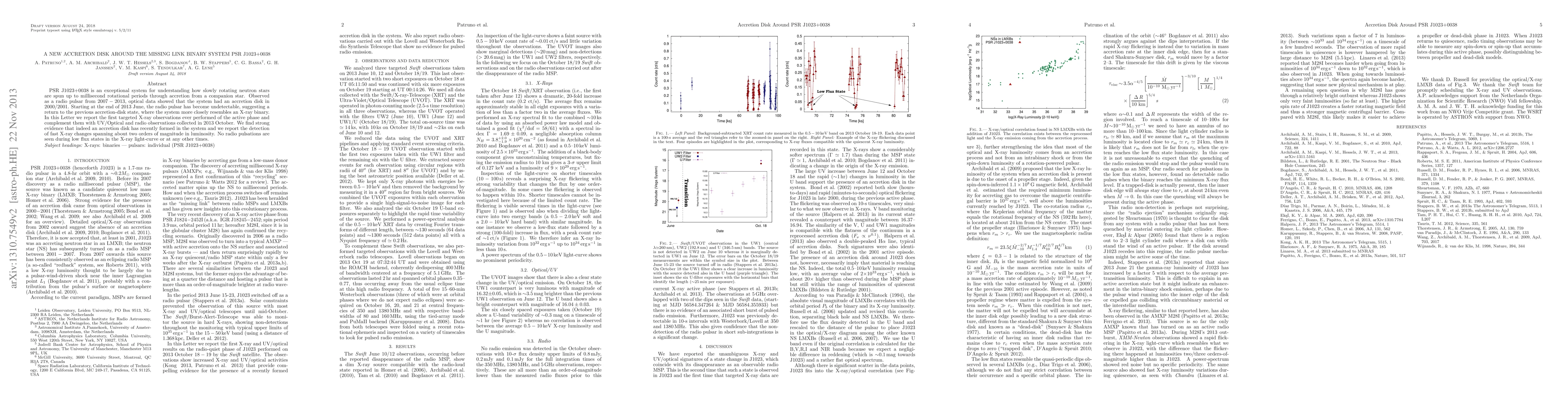 The paper presents detailed X-ray, UV/Optical, and radio observations, revealing the presence of an accretion disk and rapid X-ray variability in PSR J1023+0038.
