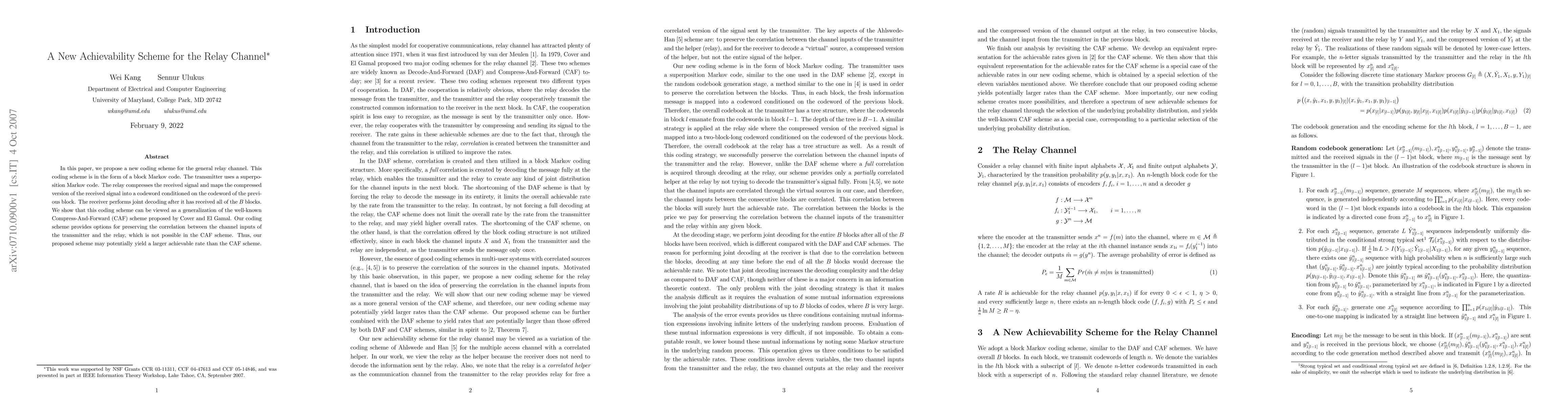 In this paper, we propose a new coding scheme for the general relay channel. This coding scheme is in the form of a block Markov code. The transmitter uses a superposition Markov code. The relay compresses the received signal and maps the compressed version of the received signal into a codeword conditioned on the codeword of the previous block. The receiver performs joint decoding after it has received all of the B blocks. We show that this coding scheme can be viewed as a generalization of the well-known Compress-And-Forward (CAF) scheme proposed by Cover and El Gamal. Our coding scheme provides options for preserving the correlation between the channel inputs of the transmitter and the relay, which is not possible in the CAF scheme. Thus, our proposed scheme may potentially yield a larger achievable rate than the CAF scheme.
