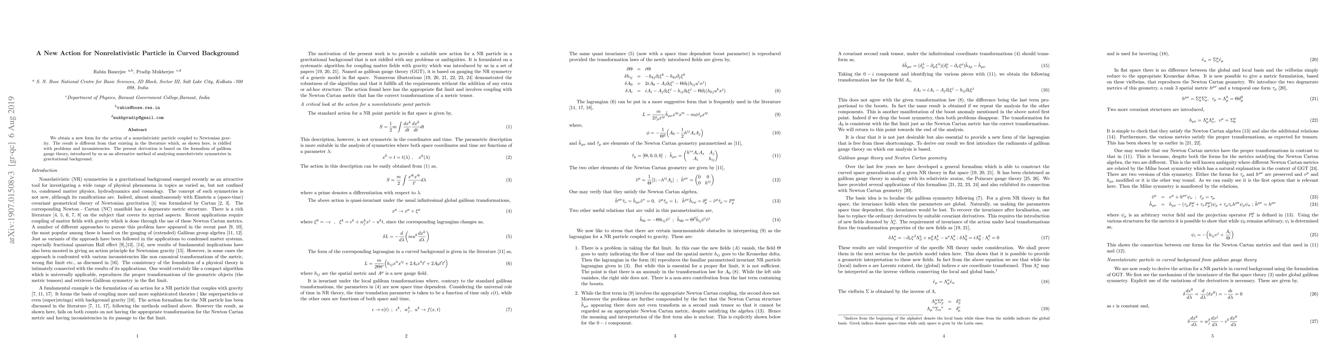 Researchers develop a new action for nonrelativistic particles in curved spacetime, correcting existing problems and inconsistencies with the literature's methods.