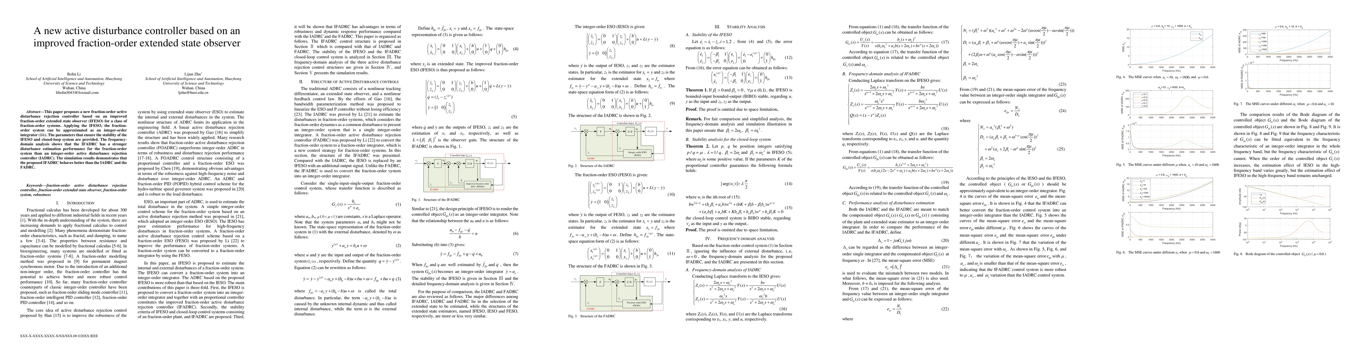 This paper proposes a new fraction-order active disturbance rejection controller based on an improved fraction-order extended state observer (IFESO) for a class of fraction-order systems. Applying the IFESO, the fraction-order system can be approximated as an integer-order integrator (1/s). The parameters that ensure the stability of the IFESO and closed-loop system are provided. The frequency-domain analysis shows that the IFADRC has a stronger disturbance estimation performance for the fraction-order system than an integer-order active disturbance rejection controller (IADRC). The simulation results demonstrates that the proposed IFADRC behaves better than the IADRC and the FADRC.