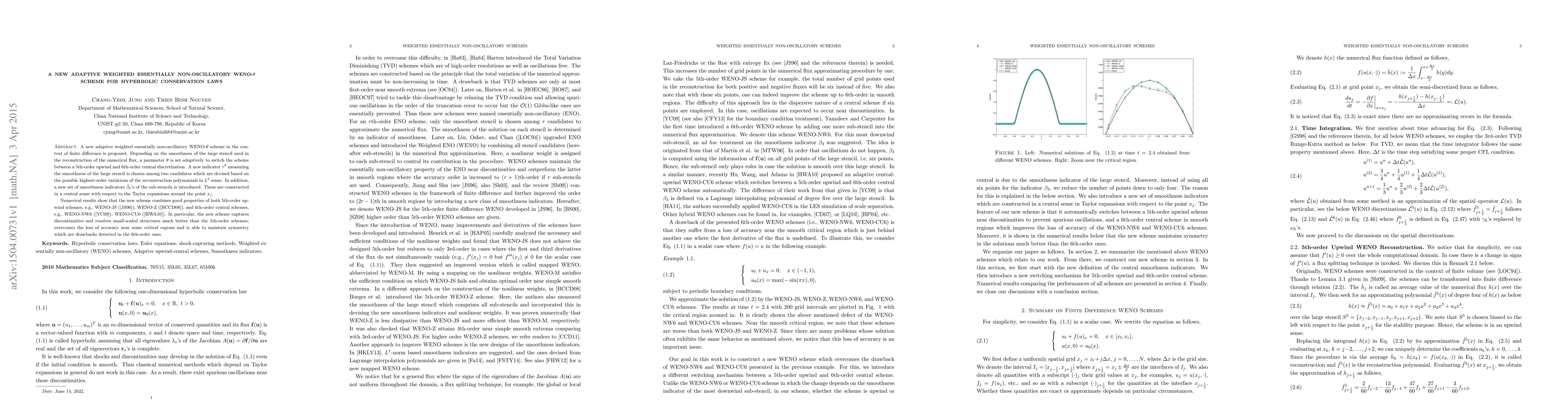 This paper proposes a new adaptive weighted essentially non-oscillary WENO-$\theta$ scheme for hyperbolic conservation laws, which adaptively switches between 5th-order upwind and 6th-order central discretization based on stencil smoothness. The scheme effectively combines the benefits of both high-order schemes while mitigating their respective drawbacks.