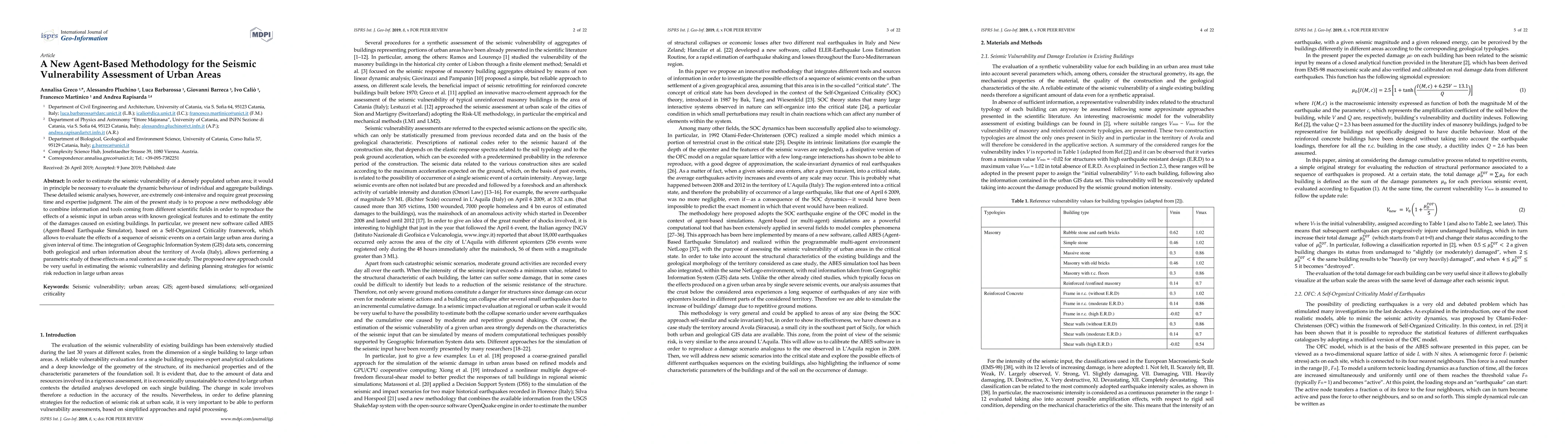 A new agent-based methodology, ABES, simulates seismic events on urban areas using GIS data to estimate seismic vulnerability and plan risk reduction strategies.
