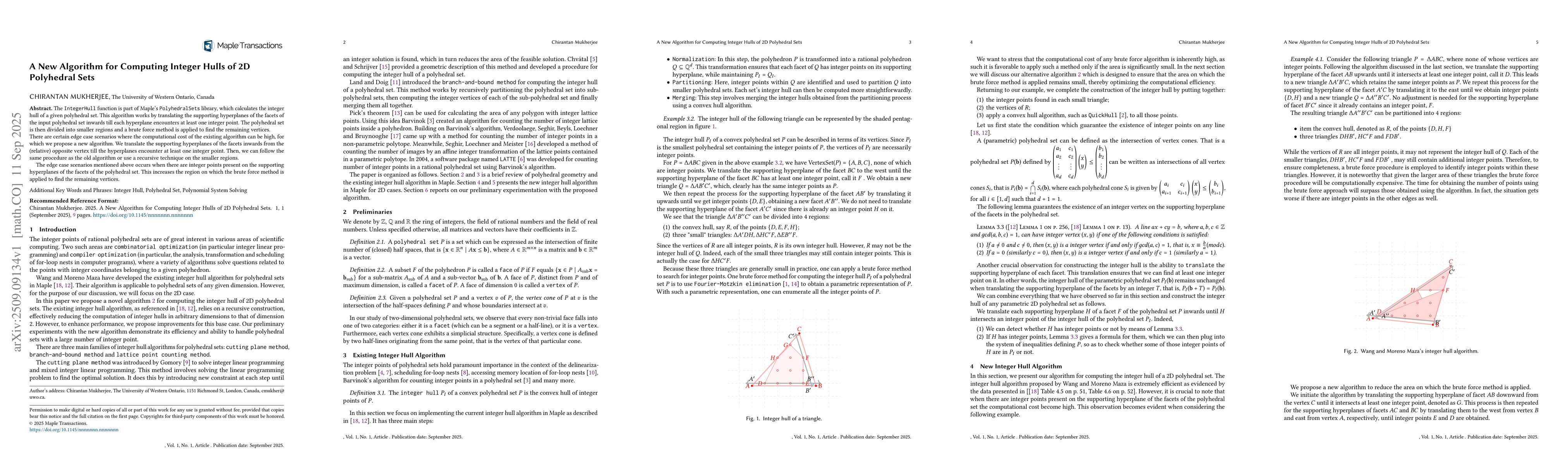 The $\texttt{IntegerHull}$ function is part of Maple's $\texttt{PolyhedralSets}$ library, which calculates the integer hull of a given polyhedral set. This algorithm works by translating the supporting hyperplanes of the facets of the input polyhedral set inwards till each hyperplane encounters at least one integer point. The polyhedral set is then divided into smaller regions and a brute force method is applied to find the remaining vertices. There are certain edge case scenarios where the computational cost of the existing algorithm can be high, for which we propose a new algorithm. We translate the supporting hyperplanes of the facets inwards from the (relative) opposite vertex till the hyperplanes encounter at least one integer point. Then, we can follow the same procedure as the old algorithm or use a recursive technique on the smaller regions. The edge case scenarios mentioned above occurs when there are integer points present on the supporting hyperplanes of the facets of the polyhedral set. This increases the region on which the brute force method is applied to find the remaining vertices.