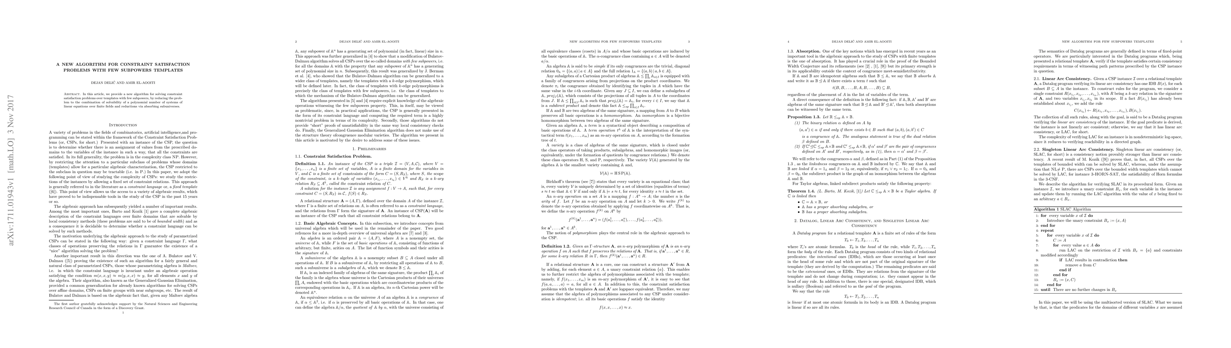 Summary: The paper introduces a novel algorithm to solve constraint satisfaction problems on templates with few subpowers by simplifying the issue into solvability of polynomial-sized linear equation systems over finite fields and leveraging absorbing subuniverses for reductions.
