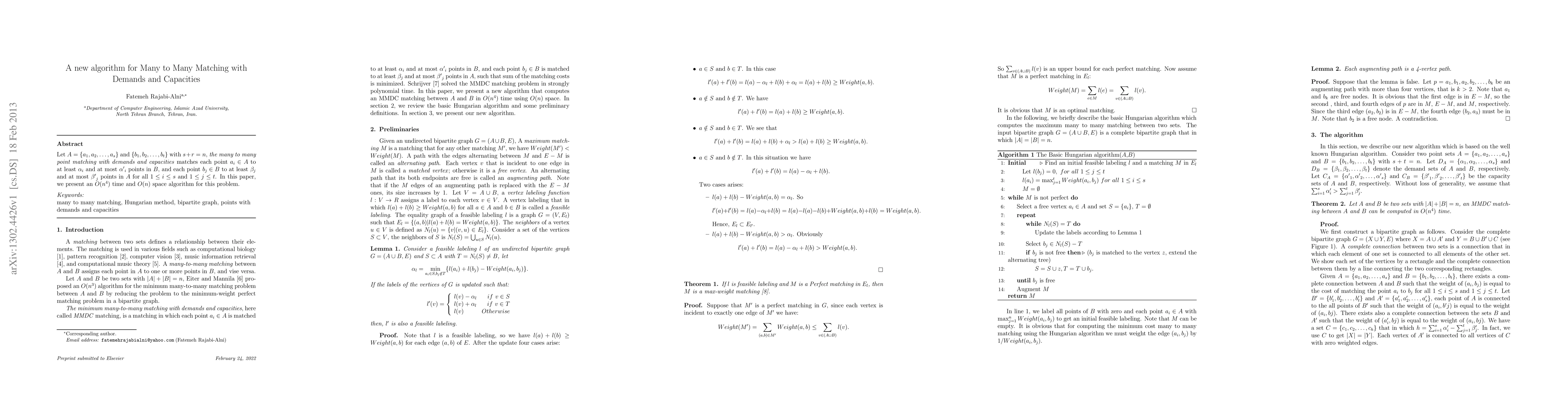 This paper introduces a new O(n^4) time and O(n) space algorithm for solving many-to-many matching problems with individual demands and capacities for each participant. The algorithm efficiently matches points in two sets while respecting specified minimum and maximum matching constraints.