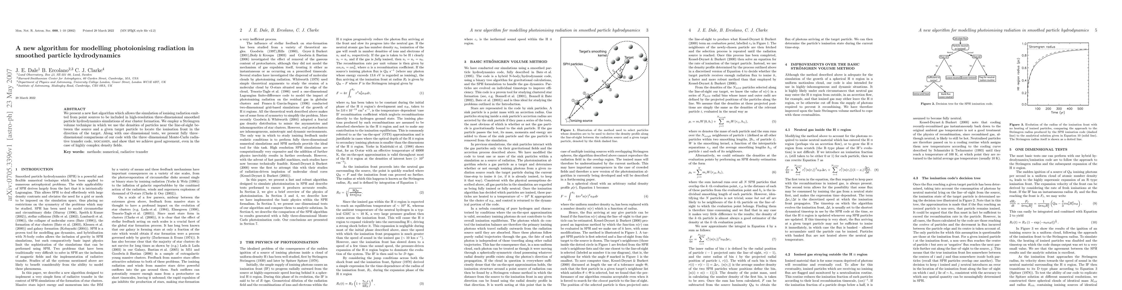 This paper introduces a new efficient algorithm for incorporating photoionising radiation from point sources in high-resolution 3D smoothed particle hydrodynamics simulations of star cluster formation. The algorithm uses a Strömgren volume technique and shows good agreement with the Monte-Carlo radiative transfer code MOCASSIN in both 1D and 3D tests.