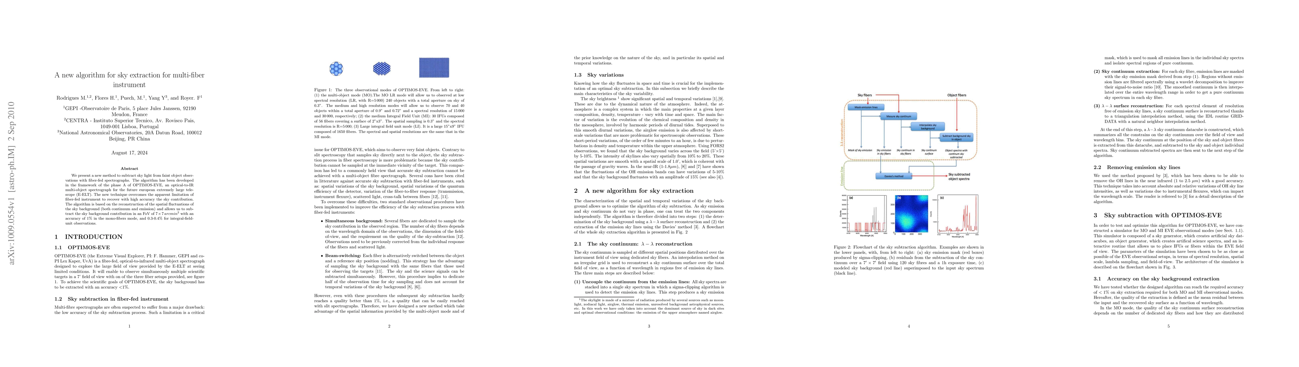 This paper introduces a novel algorithm for accurately subtracting sky light from faint object observations in fiber-fed spectrographs, developed for the OPTIMOS-EVE instrument on the future E-ELT. The method reconstructs spatial sky background fluctuations to achieve a 1% accuracy in mono-fiber mode and 0.3-0.4% in integral-field-unit observations.