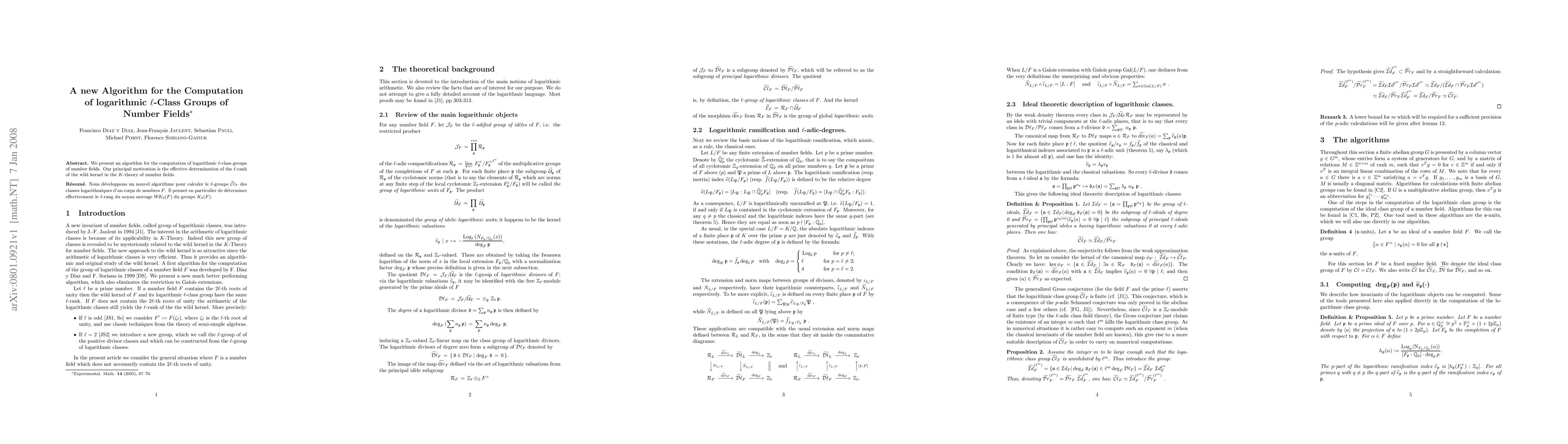 A new algorithm is introduced for computing logarithmic l-class groups of number fields, aiming to determine the l-rank of wild kernels in K-theory, with implications for algebraic geometry and arithmetic geometry.