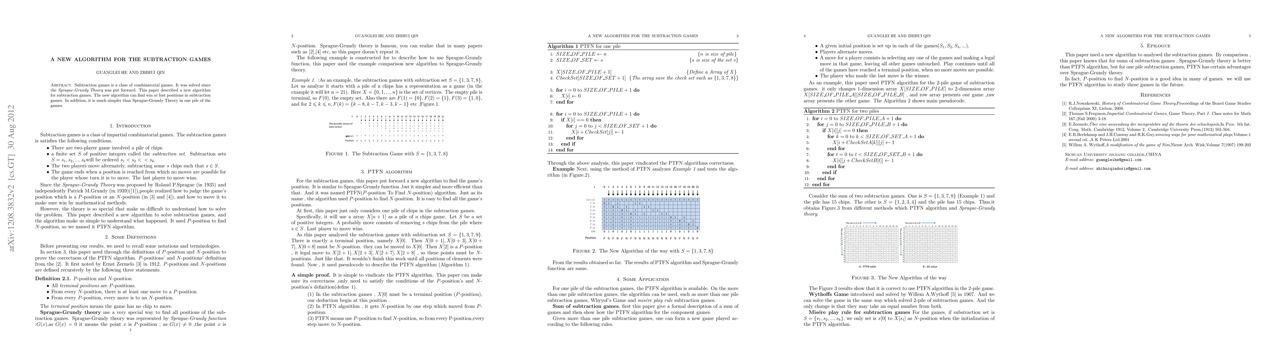 This paper introduces a new algorithm for solving subtraction games, offering a simpler method than the traditional Sprague-Grundy Theory for determining win or lose positions, especially in single-pile scenarios.