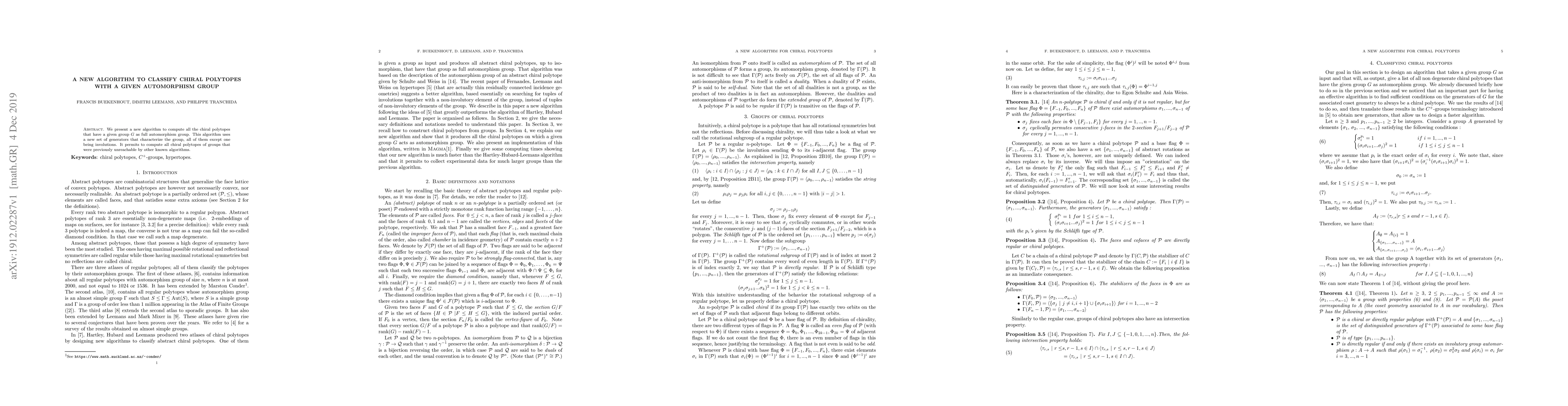 Summary: A novel algorithm is introduced to classify chiral polytopes with a specified automorphism group, employing a unique set of involution-based generators to identify polytopes previously inaccessible by existing methods.