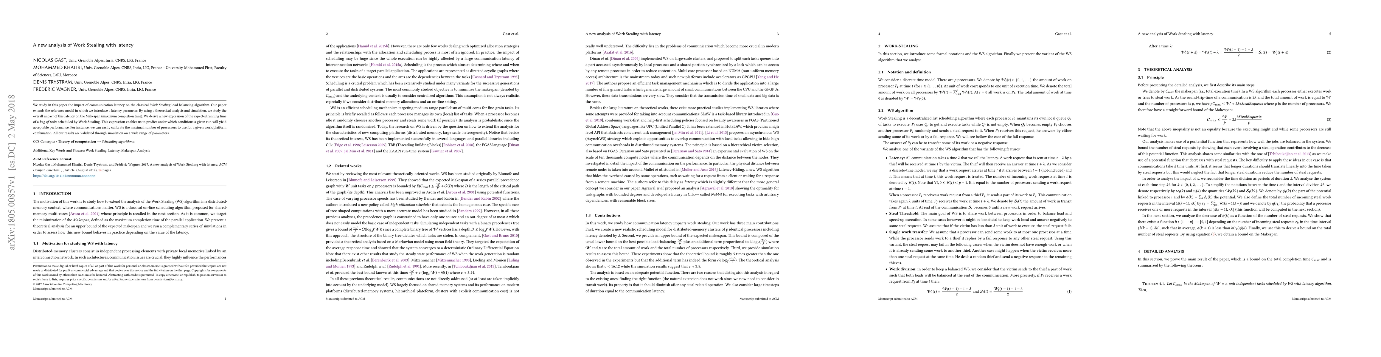 A new analysis of Work Stealing with latency shows how communication delays impact load balancing performance, enabling prediction of acceptable results through a derived expression for expected running time.