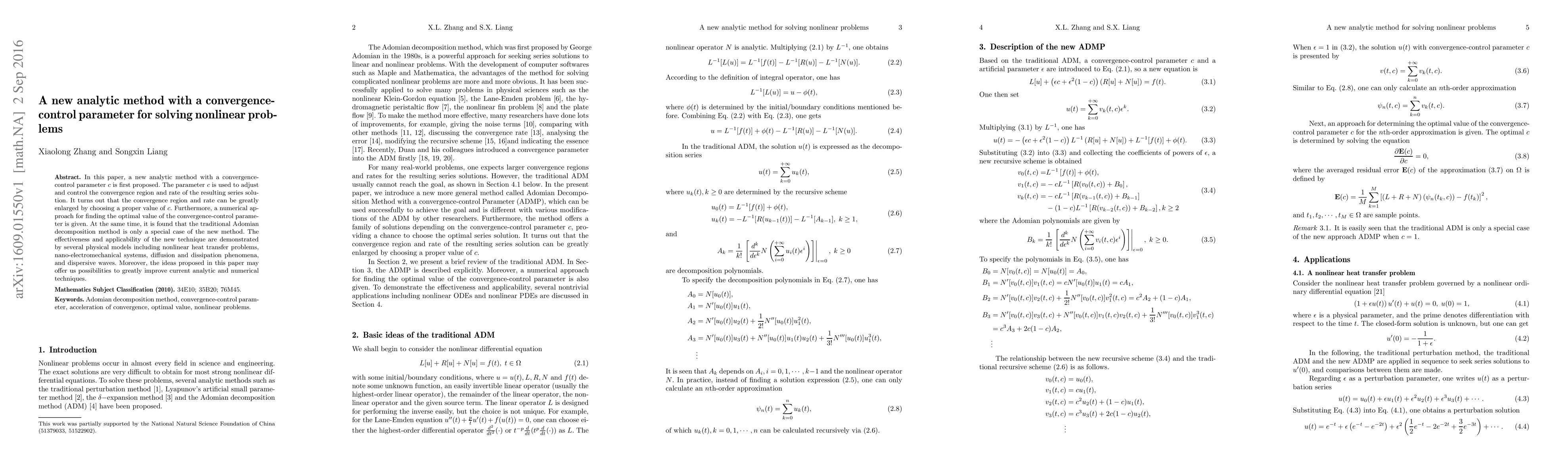 This paper introduces a new analytic method with a convergence-control parameter $c$ to solve nonlinear problems, enhancing the convergence region and rate. It also provides a numerical method to find the optimal $c$ value and demonstrates the method's effectiveness across various physical models.