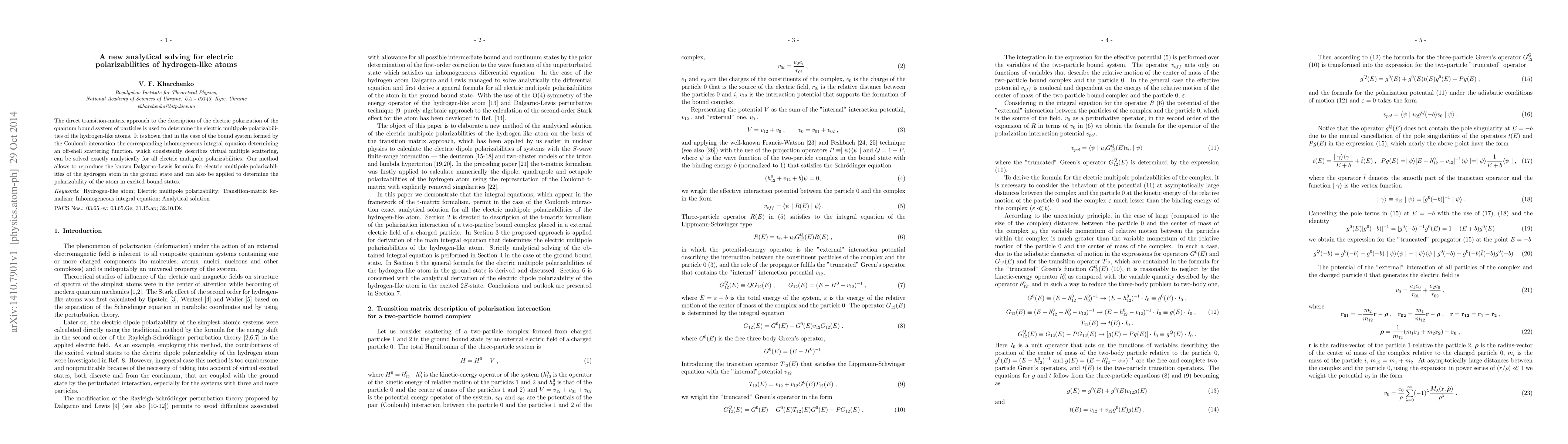This paper presents an analytical method using the direct transition-matrix approach to determine electric multipole polarizabilities of hydrogen-like atoms. The method solves an inhomogeneous integral equation exactly, reproducing the known Dalgarno-Lewis formula and extending to excited states.