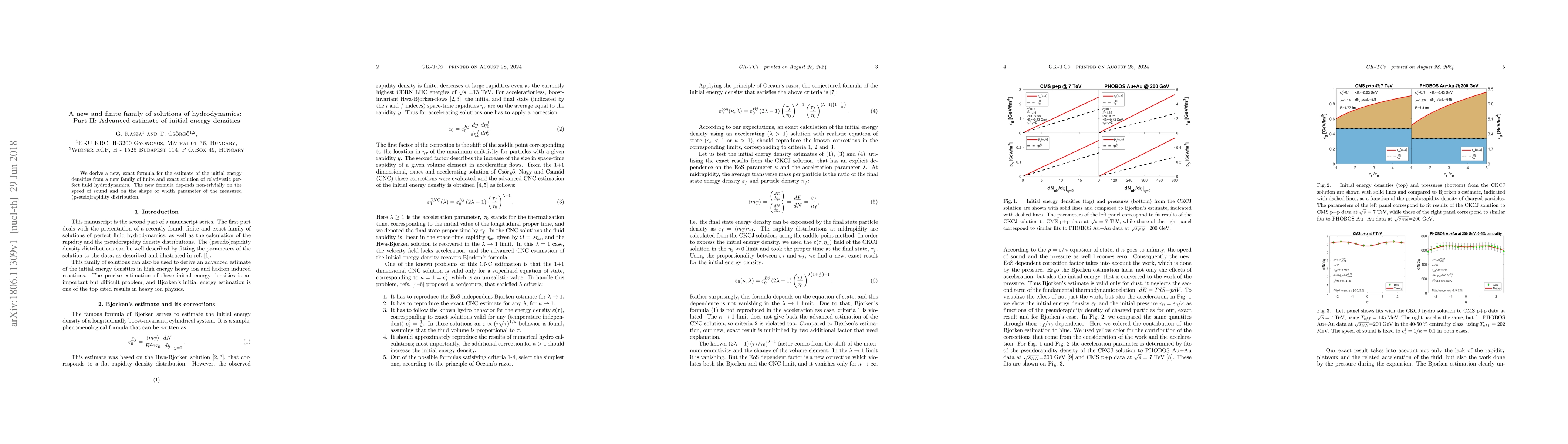 We derive a new, exact formula for the estimate of the initial energy densities from a new family of finite and exact solution of relativistic perfect fluid hydrodynamics. The new formula depends non-trivially on the speed of sound and on the shape or width parameter of the measured (pseudo)rapidity distribution.