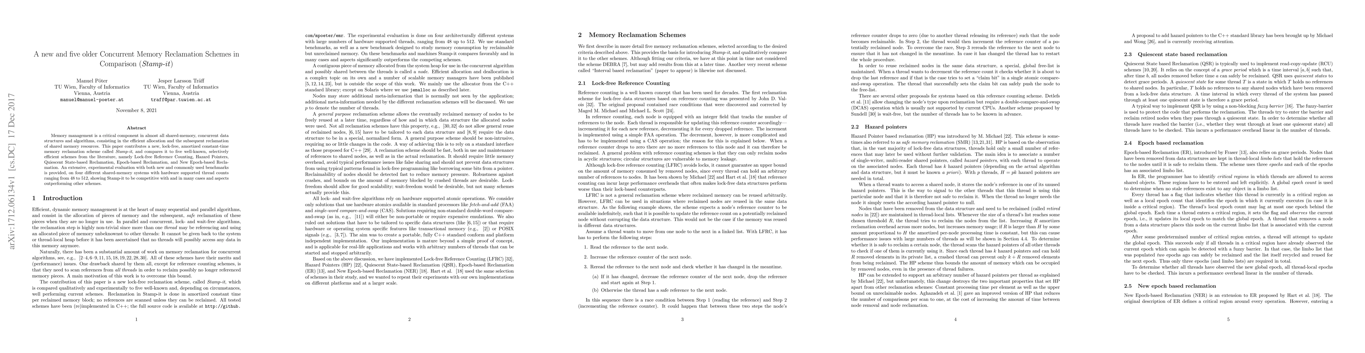 This paper introduces a new lock-free, amortized constant-time memory reclamation scheme called Stamp-it and compares it with five existing schemes: Lock-free Reference Counting, Hazard Pointers, Quiescent State-based Reclamation, Epoch-based Reclamation, and New Epoch-based Reclamation. Experimental evaluations on various shared-memory systems show Stamp-it to be competitive and often outperform the other schemes.