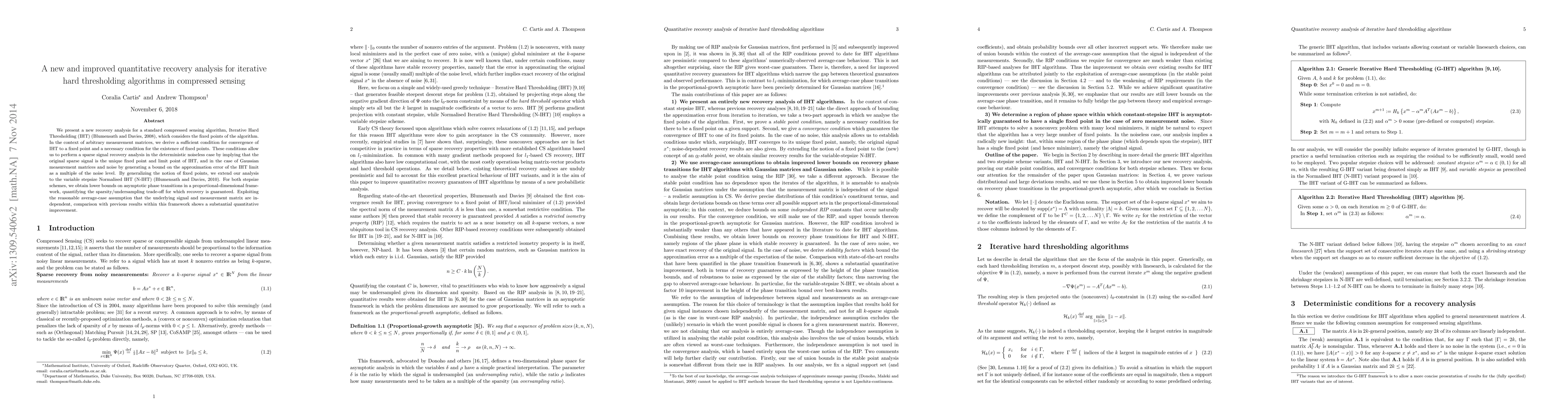 This paper improves a recovery analysis for Iterative Hard Thresholding algorithms in compressed sensing, providing lower bounds on asymptotic phase transitions and quantifying the sparsity/undersampling trade-off for guaranteed recovery.