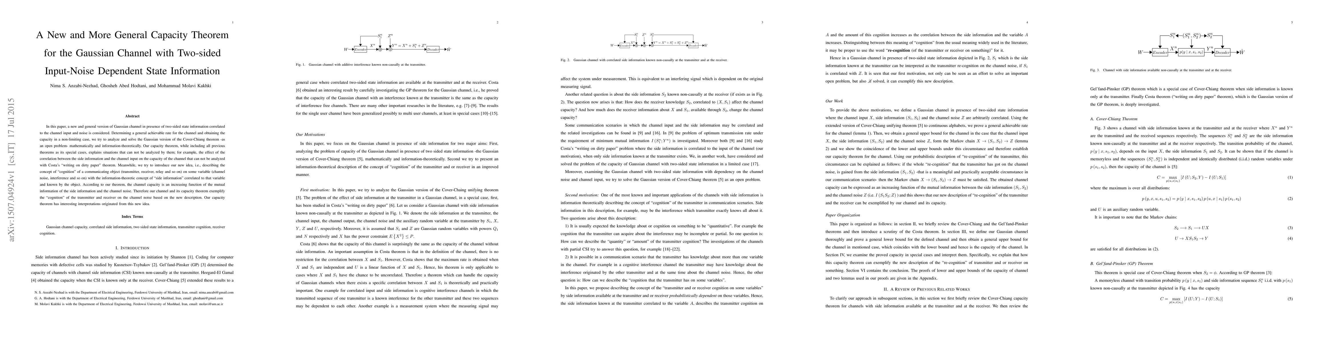 In this paper, a new and general version of Gaussian channel in presence of two-sided state information correlated to the channel input and noise is considered. Determining a general achievable rate for the channel and obtaining the capacity in a non-limiting case, we try to analyze and solve the Gaussian version of the Cover-Chiang theorem -as an open problem- mathematically and information-theoretically. Our capacity theorem, while including all previous theorems as its special cases, explains situations that can not be analyzed by them; for example, the effect of the correlation between the side information and the channel input on the capacity of the channel that can not be analyzed with Costa's "writing on dirty paper" theorem. Meanwhile, we try to introduce our new idea, i.e., describing the concept of "cognition" of a communicating object (transmitter, receiver, relay and so on) on some variable (channel noise, interference and so on) with the information-theoretic concept of "side information" correlated to that variable and known by the object. According to our theorem, the channel capacity is an increasing function of the mutual information of the side information and the channel noise. Therefore our channel and its capacity theorem exemplify the "cognition" of the transmitter and receiver on the channel noise based on the new description. Our capacity theorem has interesting interpretations originated from this new idea.