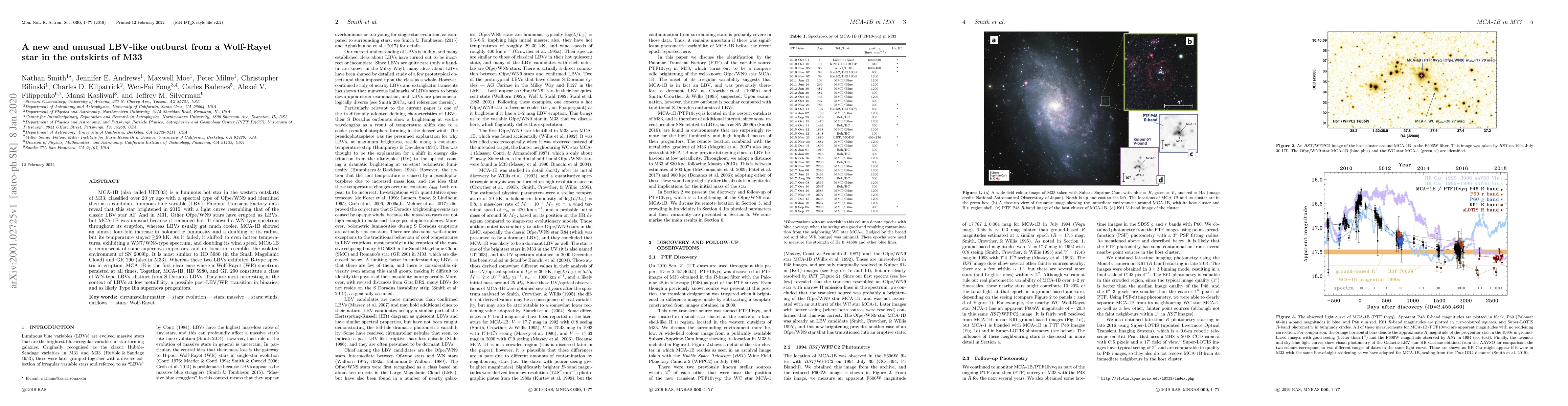 MCA-1B, a Wolf-Rayet star in M33, exhibited an unusual LBV-like outburst while maintaining a WN-type spectrum, suggesting it belongs to a distinct class of WN-type LBVs, potentially linked to low metallicity environments and supernova progenitors.