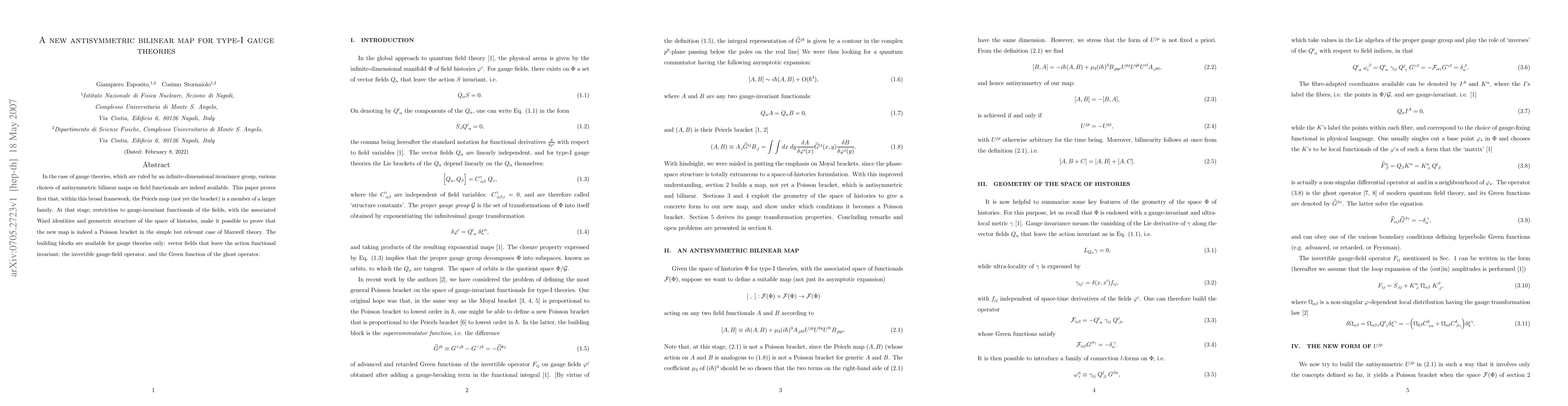 In the case of gauge theories, which are ruled by an infinite-dimensional invariance group, various choices of antisymmetric bilinear maps on field functionals are indeed available. This paper proves first that, within this broad framework, the Peierls map (not yet the bracket) is a member of a larger family. At that stage, restriction to gauge-invariant functionals of the fields, with the associated Ward identities and geometric structure of the space of histories, make it possible to prove that the new map is indeed a Poisson bracket in the simple but relevant case of Maxwell theory. The building blocks are available for gauge theories only: vector fields that leave the action functional invariant; the invertible gauge-field operator, and the Green function of the ghost operator.