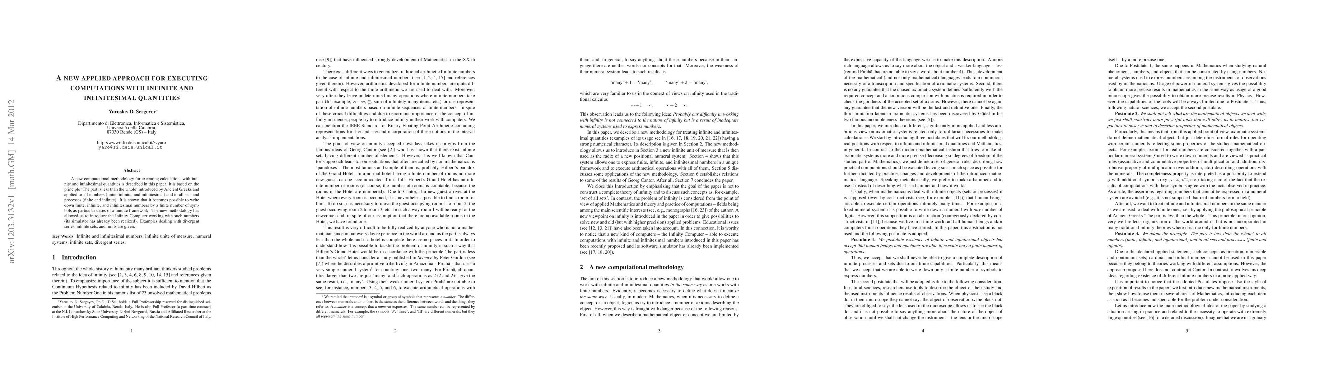 This paper introduces a novel computational methodology for handling infinite and infinitesimal quantities based on the principle "The part is less than the whole." It enables the representation of these numbers within a unified framework and has led to the development of the Infinity Computer, which can process such numbers, with examples demonstrating its application to divergent series, infinite sets, and limits.
