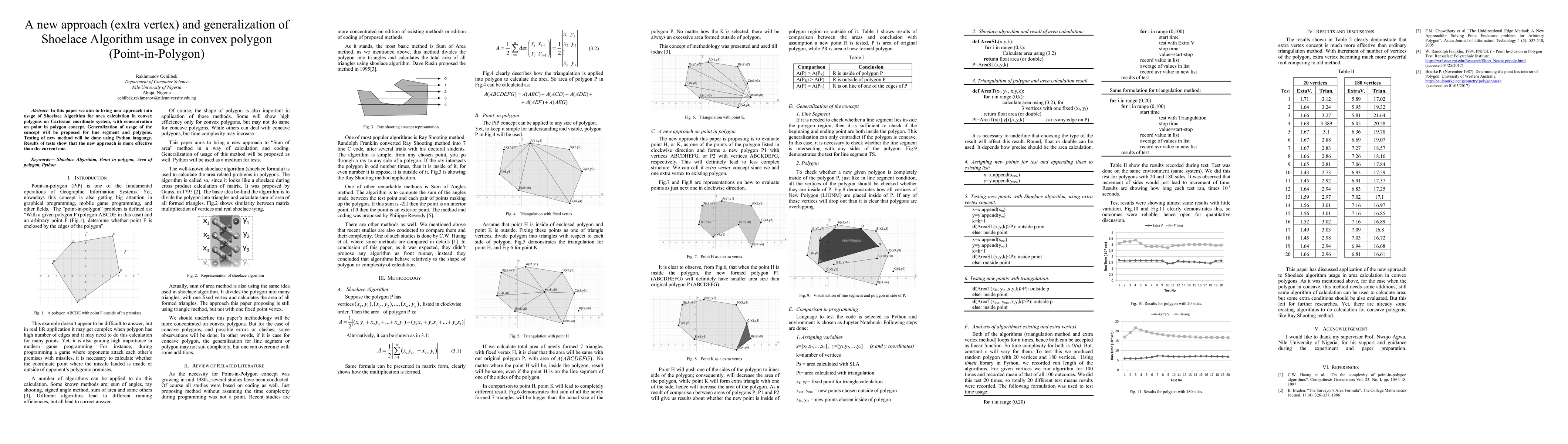This paper introduces a novel method using an extra vertex to enhance the Shoelace Algorithm for calculating areas in convex polygons and extends its application to point-in-polygon tests, line segments, and generalized polygons. Python testing demonstrates the new approach's superior effectiveness over traditional methods.