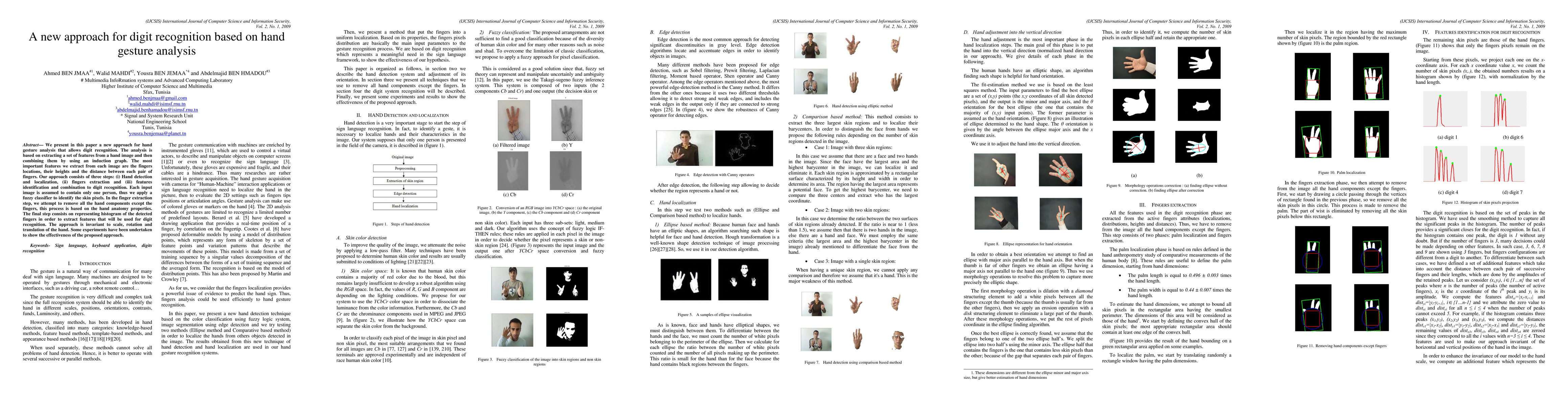 This paper introduces a novel method for digit recognition through hand gesture analysis, utilizing extracted features like finger locations and distances. The approach involves hand detection, finger extraction, and feature combination using an induction graph, demonstrating invariance to scale, rotation, and translation.