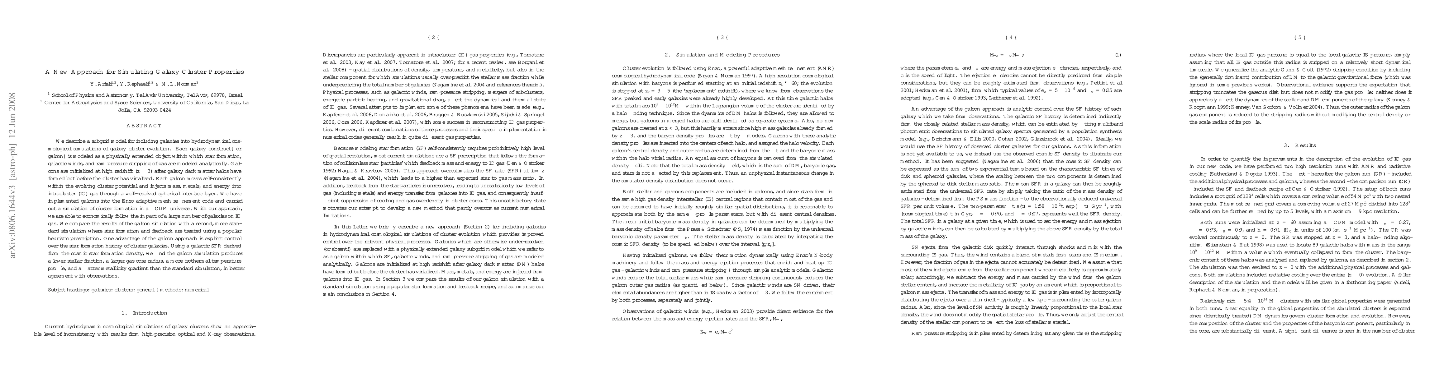 We describe a subgrid model for including galaxies into hydrodynamical cosmological simulations of galaxy cluster evolution. Each galaxy construct- or galcon- is modeled as a physically extended object within which star formation, galactic winds, and ram pressure stripping of gas are modeled analytically. Galcons are initialized at high redshift (z~3) after galaxy dark matter halos have formed but before the cluster has virialized. Each galcon moves self-consistently within the evolving cluster potential and injects mass, metals, and energy into intracluster (IC) gas through a well-resolved spherical interface layer. We have implemented galcons into the Enzo adaptive mesh refinement code and carried out a simulation of cluster formation in a LambdaCDM universe. With our approach, we are able to economically follow the impact of a large number of galaxies on IC gas. We compare the results of the galcon simulation with a second, more standard simulation where star formation and feedback are treated using a popular heuristic prescription. One advantage of the galcon approach is explicit control over the star formation history of cluster galaxies. Using a galactic SFR derived from the cosmic star formation density, we find the galcon simulation produces a lower stellar fraction, a larger gas core radius, a more isothermal temperature profile, and a flatter metallicity gradient than the standard simulation, in better agreement with observations.