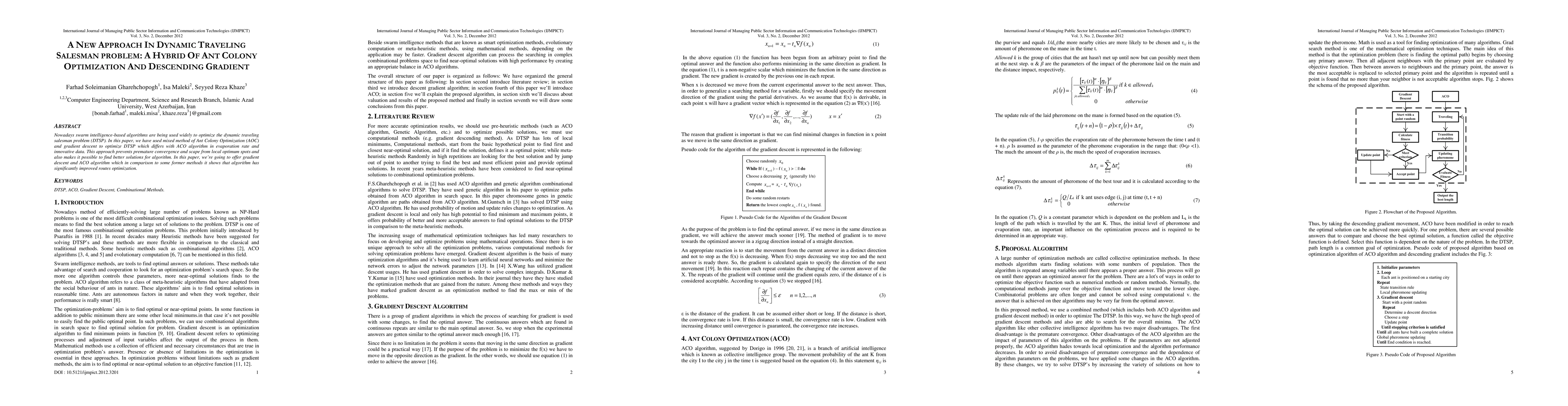 This paper proposes a hybrid algorithm combining Ant Colony Optimization (ACO) and gradient descent to optimize the dynamic traveling salesman problem (DTSP). The approach aims to prevent premature convergence and escape local optima, resulting in significantly improved route optimization compared to previous methods.