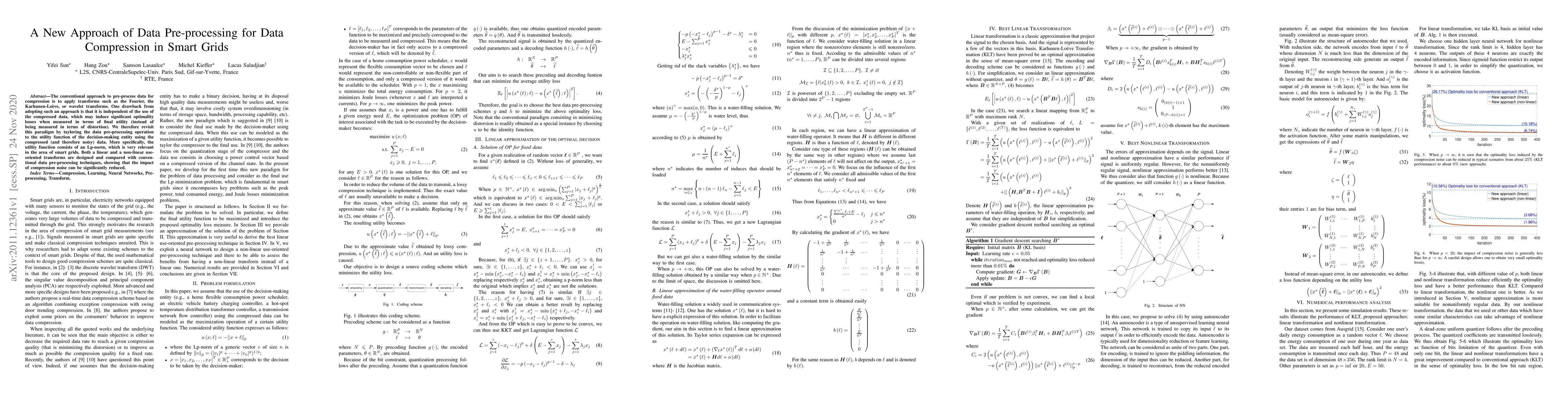 The conventional approach to pre-process data for compression is to apply transforms such as the Fourier, the Karhunen-Lo\`{e}ve, or wavelet transforms. One drawback from adopting such an approach is that it is independent of the use of the compressed data, which may induce significant optimality losses when measured in terms of final utility (instead of being measured in terms of distortion). We therefore revisit this paradigm by tayloring the data pre-processing operation to the utility function of the decision-making entity using the compressed (and therefore noisy) data. More specifically, the utility function consists of an Lp-norm, which is very relevant in the area of smart grids. Both a linear and a non-linear use-oriented transforms are designed and compared with conventional data pre-processing techniques, showing that the impact of compression noise can be significantly reduced.