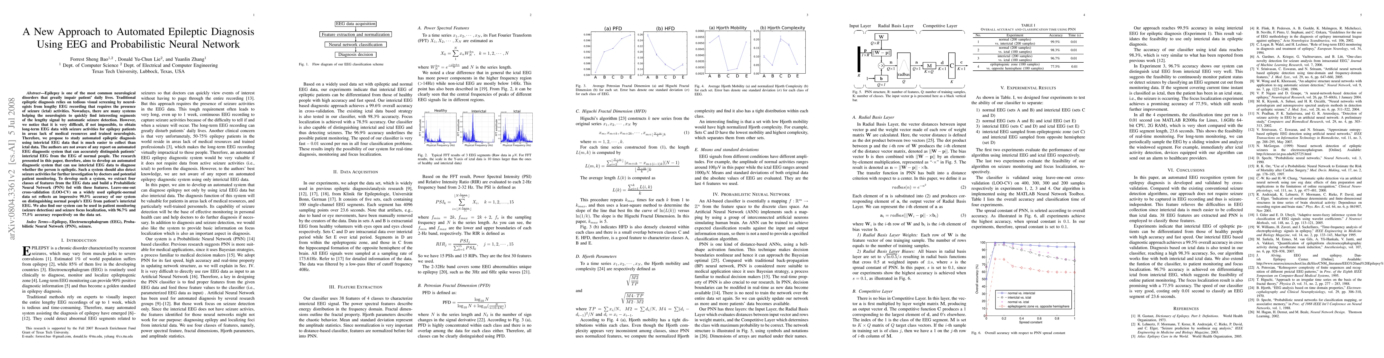 This paper proposes an automated epileptic diagnosis system using interictal EEG data and a Probabilistic Neural Network (PNN) to distinguish between epileptic patients and normal individuals, achieving 99.5% accuracy. The system also demonstrates 96.7% accuracy in seizure detection and 77.5% in seizure focus localization.