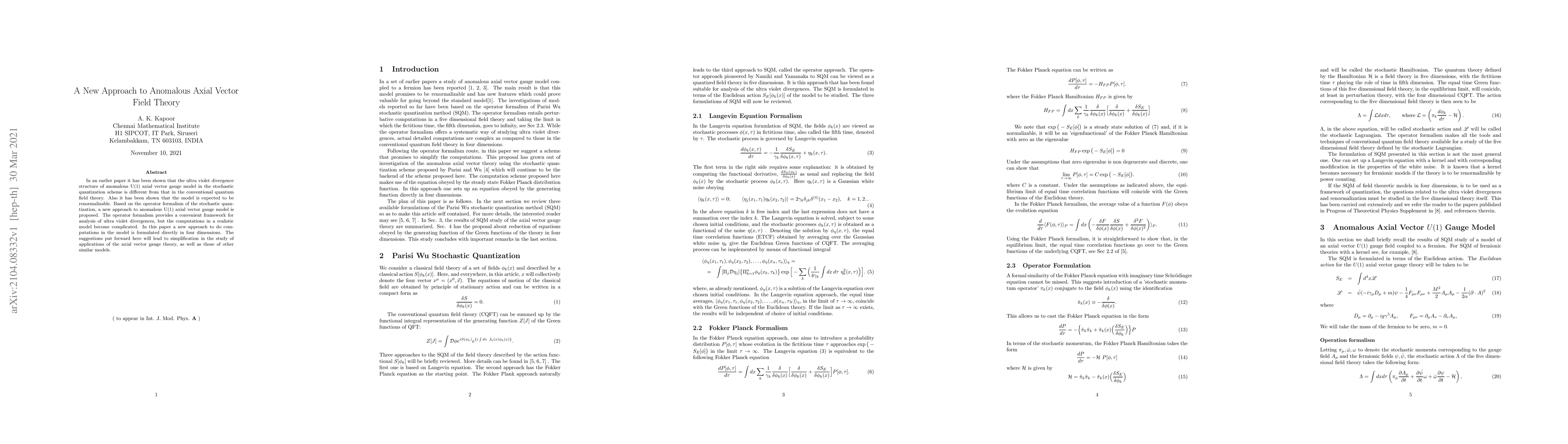 This paper proposes a new approach to the anomalous U(1) axial vector gauge model using the operator formalism of stochastic quantization, aiming to simplify computations in four dimensions and improve the analysis of ultraviolet divergences. The new method is expected to simplify the study of axial vector gauge theories and similar models.