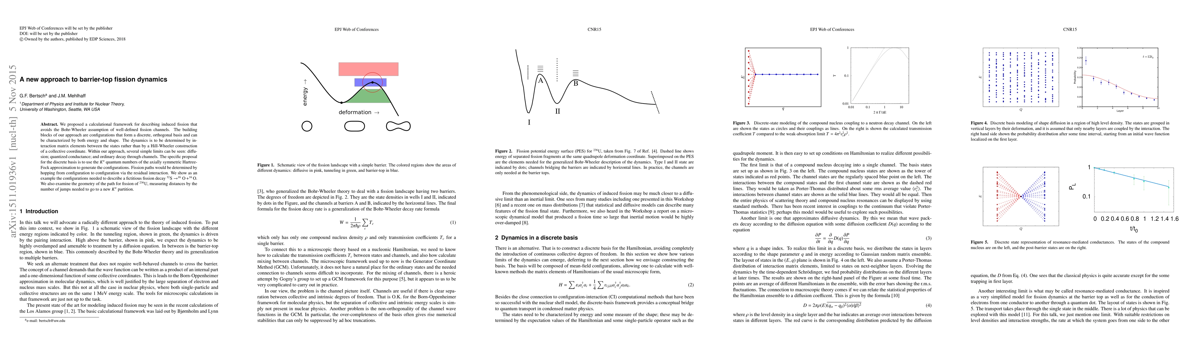 The paper introduces a novel computational framework for induced fission, bypassing the traditional Bohr-Wheeler assumption of distinct fission channels. It employs a discrete, orthogonal basis of configurations characterized by energy and shape, with interaction matrix elements dictating the dynamics. The method successfully illustrates fission pathways for a hypothetical $^{32}$S decay and examines the geometry of $^{236}$U fission, measuring distances via required $K^pi$ partition jumps.
