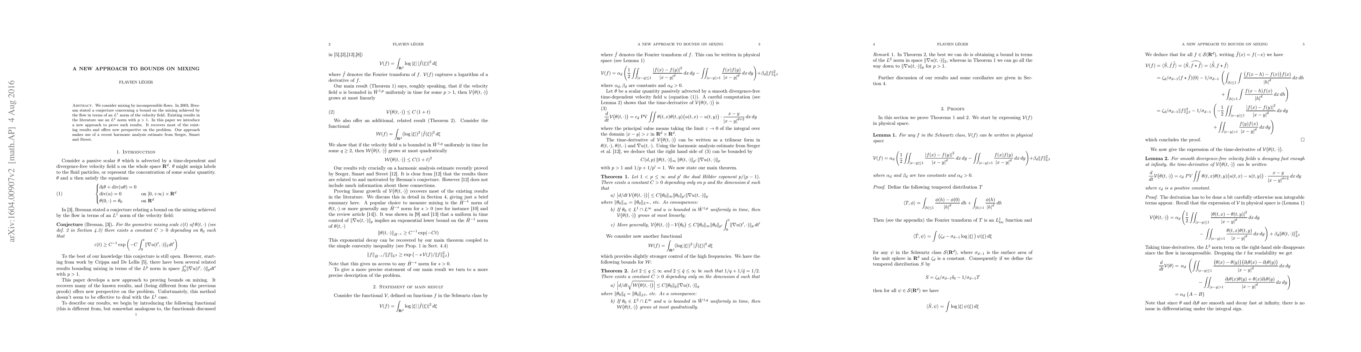 We consider mixing by incompressible flows. In 2003, Bressan stated a conjecture concerning a bound on the mixing achieved by the flow in terms of an $L^1$ norm of the velocity field. Existing results in the literature use an $L^p$ norm with $p>1$. In this paper we introduce a new approach to prove such results. It recovers most of the existing results and offers new perpective on the problem. Our approach makes use of a recent harmonic analysis estimate from Seeger, Smart and Street.