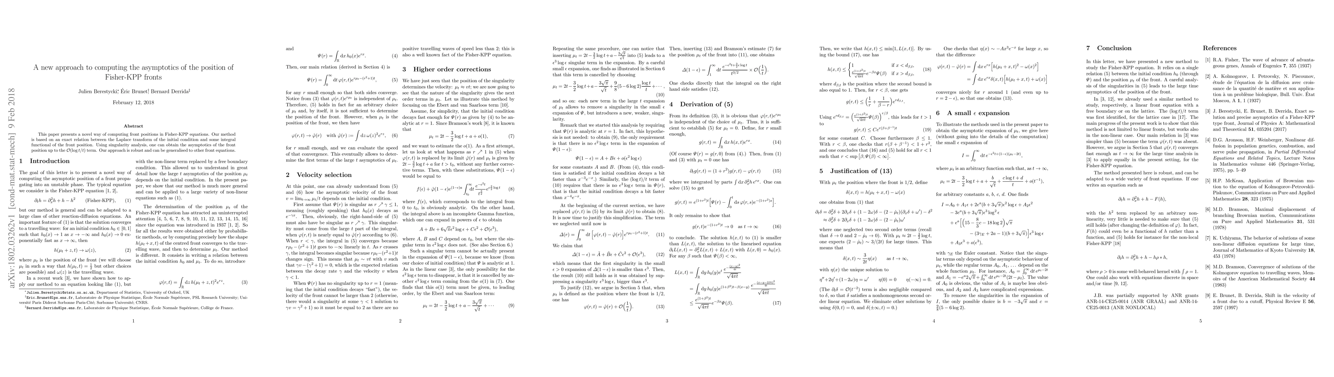 This paper presents a novel way of computing front positions in Fisher-KPP equations. Our method is based on an exact relation between the Laplace transform of the initial condition and some integral functional of the front position. Using singularity analysis, one can obtain the asymptotics of the front position up to the O(log t/t) term. Our approach is robust and can be generalised to other front equations.
