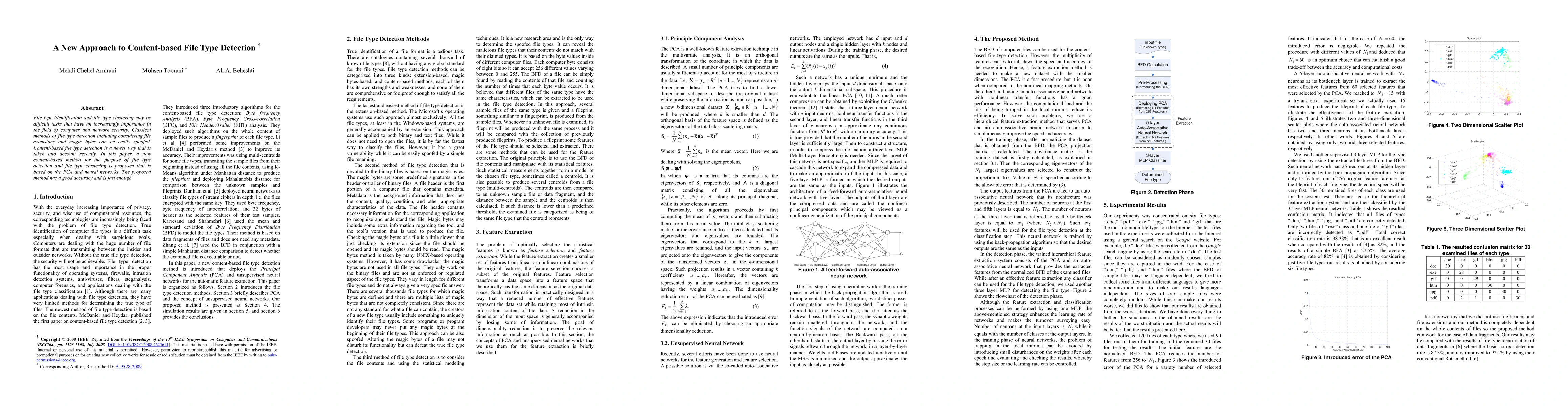 This paper proposes a novel content-based method for file type detection and clustering using PCA and neural networks, demonstrating high accuracy and speed compared to traditional methods.
