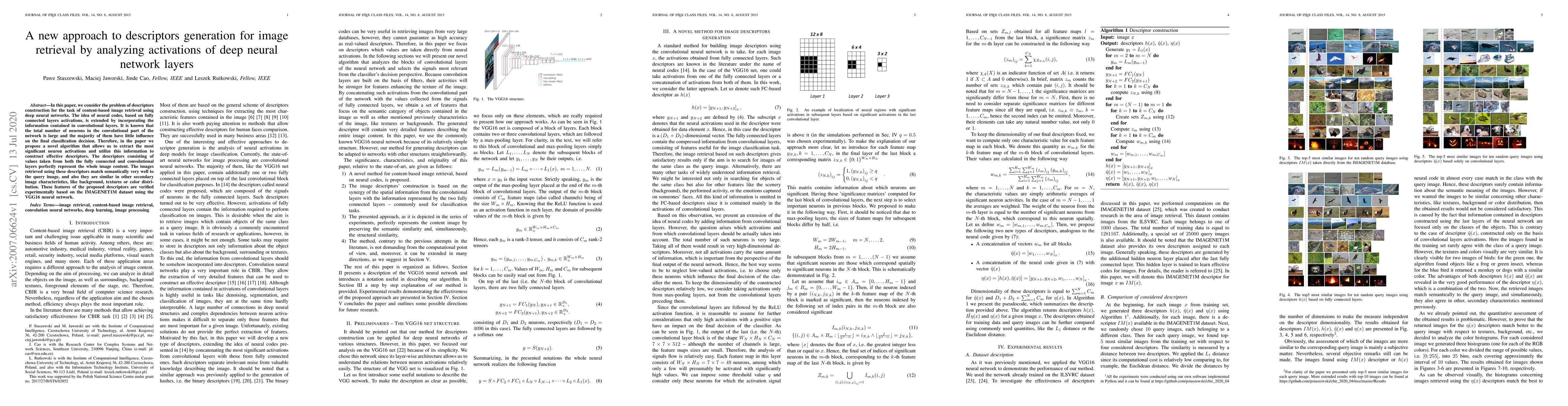 This paper proposes a novel algorithm to generate effective descriptors for content-based image retrieval by analyzing activations from both fully connected and convolutional layers of deep neural networks. Experimental results on the IMAGENET1M dataset show that these descriptors accurately represent image content and retrieve semantically matching images.