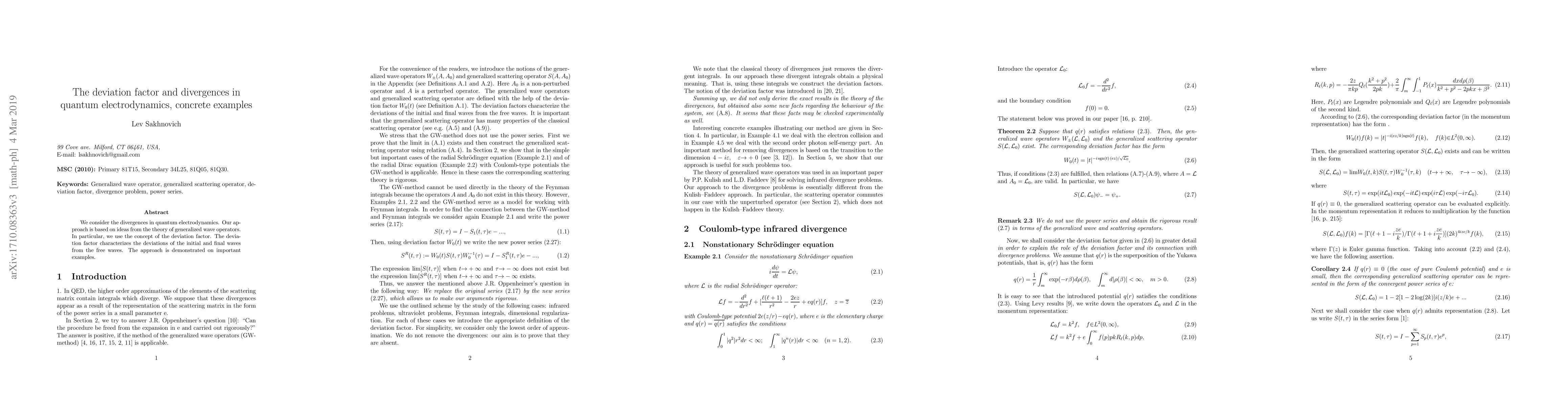 This paper introduces a novel method for addressing divergences in quantum electrodynamics using the concept of the deviation factor, which quantifies the differences between interacting and free waves. The approach is illustrated through specific, significant examples.