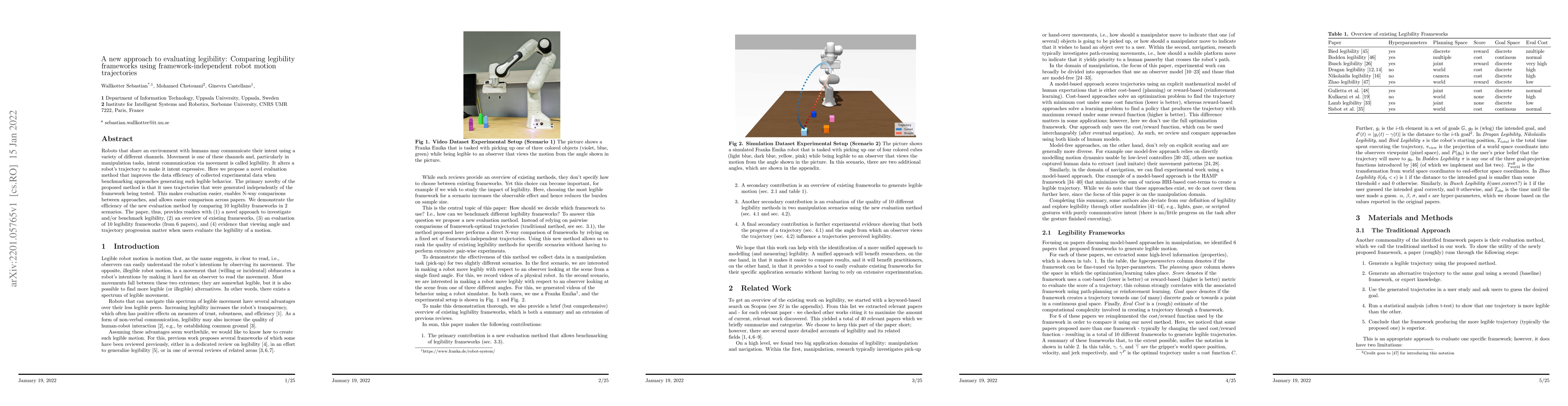 Researchers propose a new method to evaluate legibility in robot movement, comparing trajectories generated independently of frameworks, and demonstrate its efficiency by benchmarking 10 legibility frameworks.