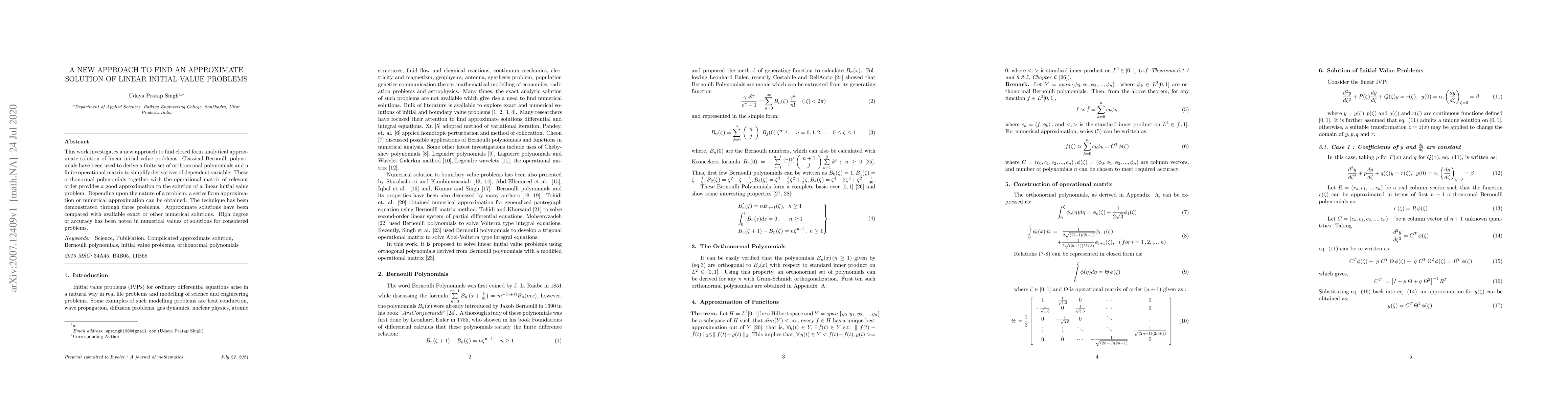 Researchers developed a new approach to solve linear initial value problems using Bernoulli polynomials and an operational matrix, achieving high accuracy in numerical solutions for three tested problems.