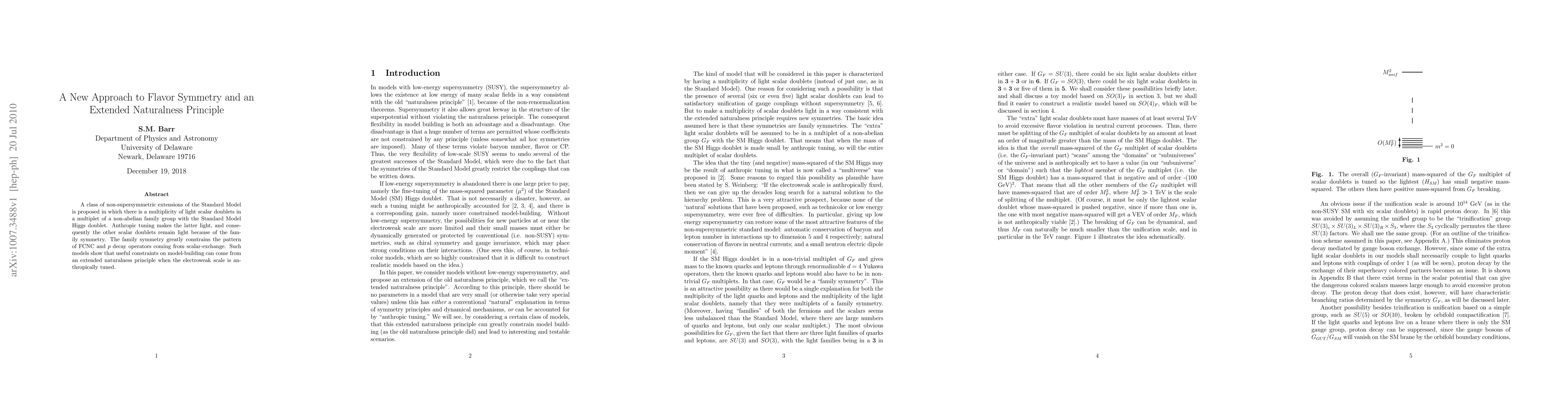 A class of non-supersymmetric extensions of the Standard Model is proposed in which there is a multiplicity of light scalar doublets in a multiplet of a non-abelian family group with the Standard Model Higgs doublet. Anthropic tuning makes the latter light, and consequently the other scalar doublets remain light because of the family symmetry. The family symmetry greatly constrains the pattern of FCNC and proton decay operators coming from scalar-exchange. Such models show that useful constraints on model-building can come from an extended naturalness principle when the electroweak scale is anthropically tuned.
