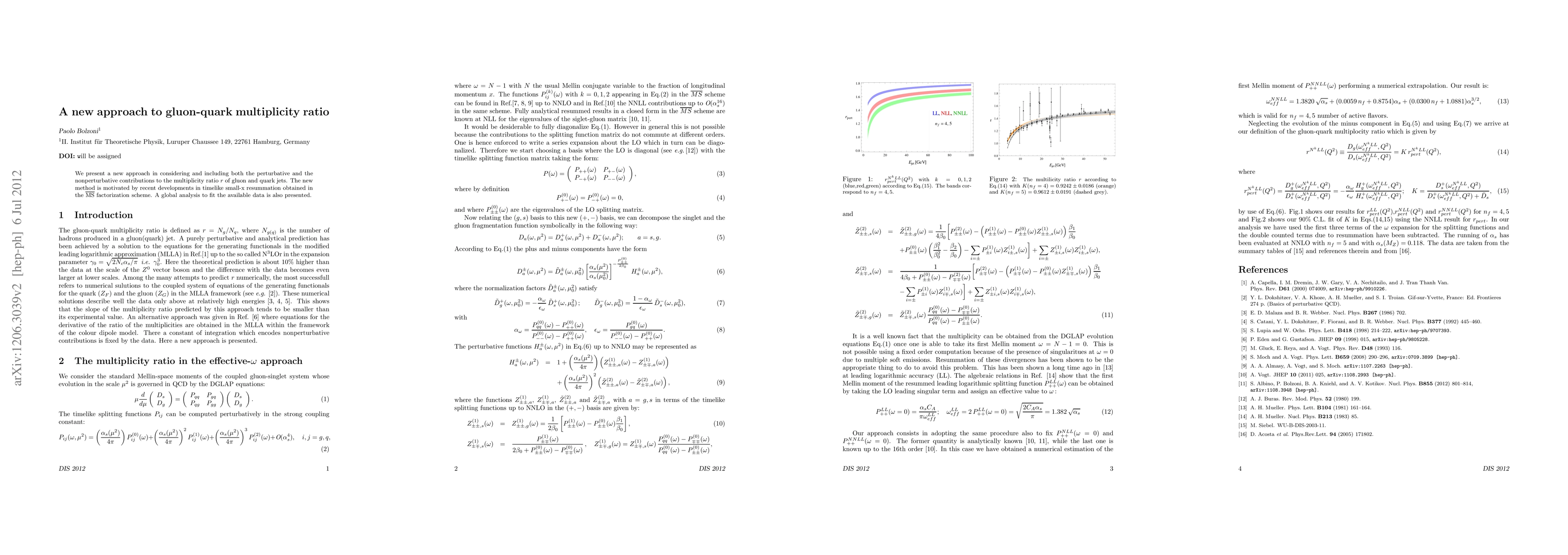 We present a new approach in considering and including both the perturbative and the nonperturbative contributions to the multiplicity ratio $r$ of gluon and quark jets. The new method is motivated by recent developments in timelike small-x resummation obtained in the $\bar{\rm MS}$ factorization scheme. A global analysis to fit the available data is also presented.