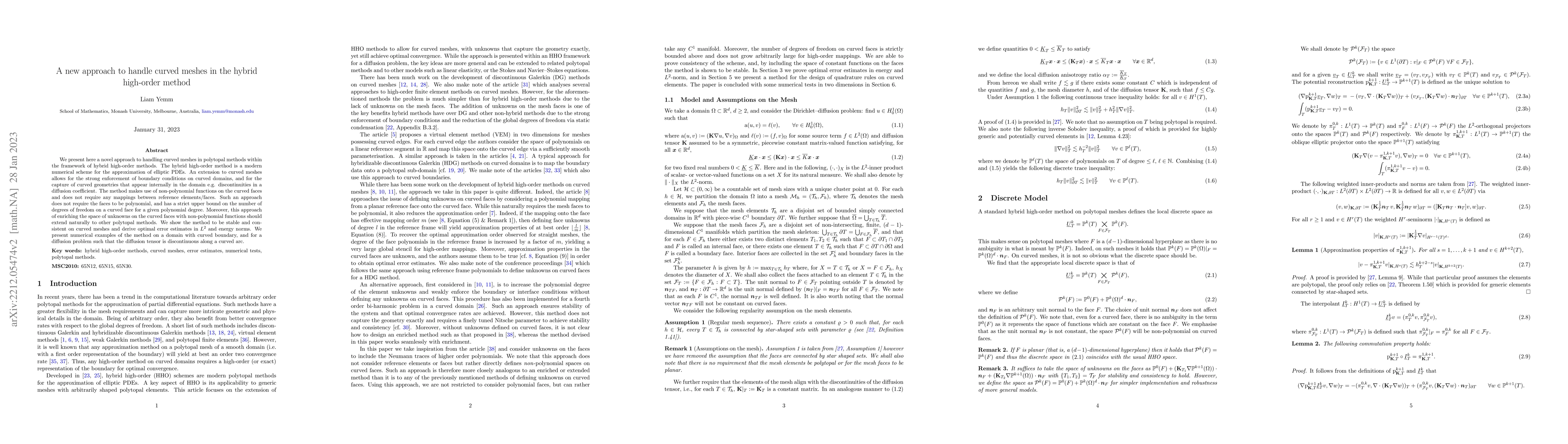 This paper introduces an extension of the hybrid high-order method to handle curved meshes, allowing exact enforcement of boundary conditions and capturing internal curved geometries. The method uses non-polynomial functions on curved faces without requiring mappings, ensuring stability, consistency, and optimal error estimates.