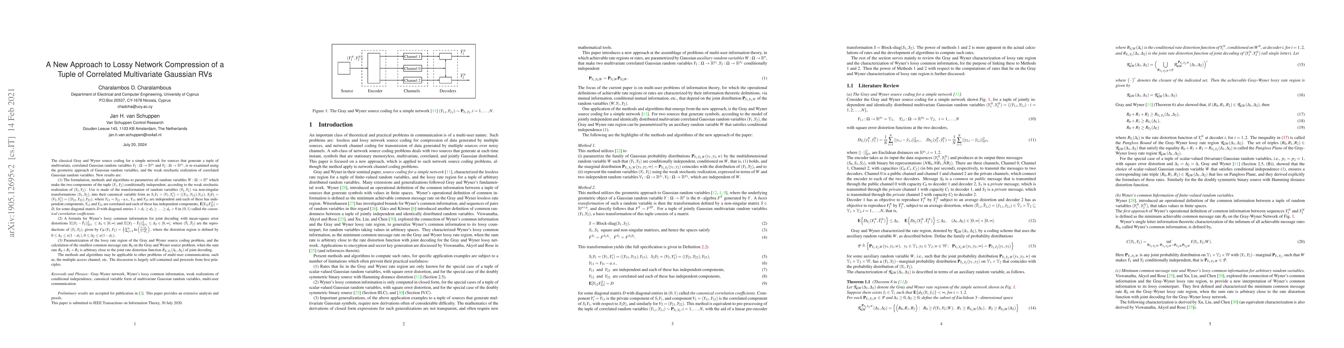 The classical Gray and Wyner source coding for a simple network for sources that generate a tuple of multivariate, correlated Gaussian random variables $(Y_1,Y_2)$ is re-examined using the geometric approach of Gaussian random variables, and the weak stochastic realization of correlated Gaussian random variables. New results are: (1) The formulation, methods and algorithms to parametrize all random variables $W : \Omega \rightarrow {\mathbb R}^n $ which make the two components of the tuple $(Y_1,Y_2)$ conditionally independent, according to the weak stochastic realization of $(Y_1, Y_2)$. (2) The transformation of random variables $(Y_1,Y_2)$ via non-singular transformations $(S_1,S_2)$, into their canonical variable form. (3) A formula for Wyner's lossy common information for joint decoding with mean-square error distortions. (4) The methods are shown to be of fundamental importance to the parametrization of the lossy rate region of the Gray and Wyner source coding problem, and the calculation of the smallest common message rate $R_0$ on the Gray and Wyner source problem, when the sum rate $R_0+R_1+R_2$ is arbitrary close to the joint rate distortion function $R_{Y_1, Y_2}(\Delta_1, \Delta_2)$ of joint decoding. The methods and algorithms may be applicable to other problems of multi-user communication, such as, the multiple access channel, etc. The discussion is largely self-contained and proceeds from first principles; basic concepts of weak stochastic realization theory of multivariate correlated Gaussian random variables are reviewed, while certain results are developed to meet the requirement of results (1)-(4).