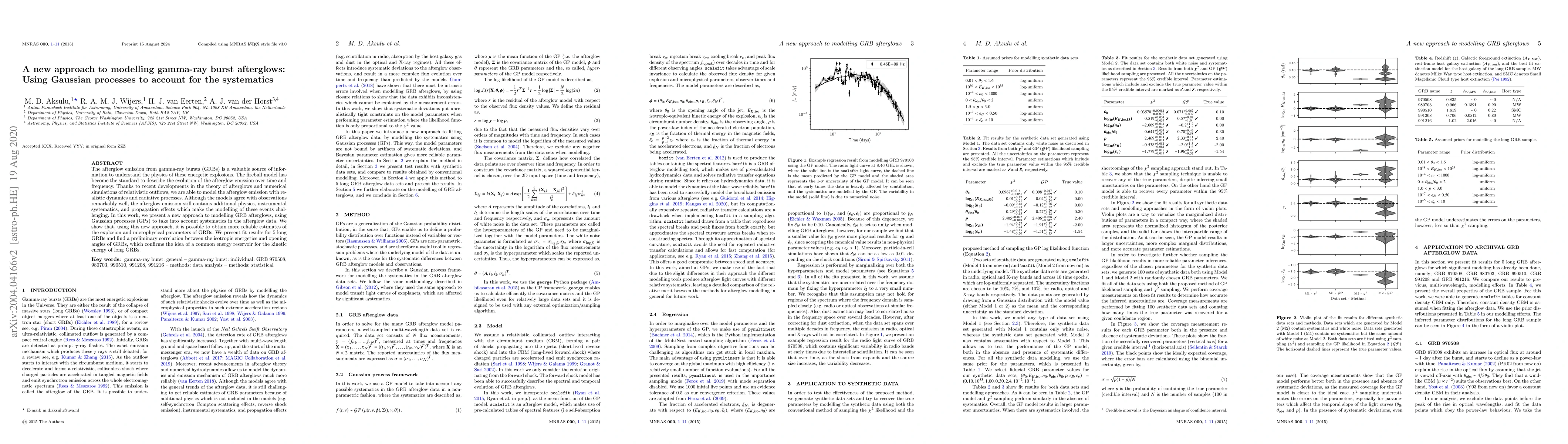 The afterglow emission from gamma-ray bursts (GRBs) is a valuable source of information to understand the physics of these energetic explosions. The blast wave model has become the standard to describe the evolution of the afterglow emission over time and frequency. Thanks to recent developments in the theory of afterglows and numerical simulations of relativistic outflows, we are able to model the afterglow emission with realistic dynamics and radiative processes. Although the models agree with observations remarkably well, the afterglow emission still contains additional physics, instrumental systematics, and propagation effects which make the modelling of these events challenging. In this work, we present a new approach to modelling GRB afterglows, using Gaussian processes (GPs) to take into account systematics in the afterglow data. We show that, using this new approach, it is possible to obtain more reliable estimates of the explosion and microphysical parameters of GRBs. We present fit results for 5 long GRBs and find a preliminary correlation between the isotropic energetics and opening angles of GRBs, which confirms the idea of a common energy reservoir for the kinetic energy of long GRBs.